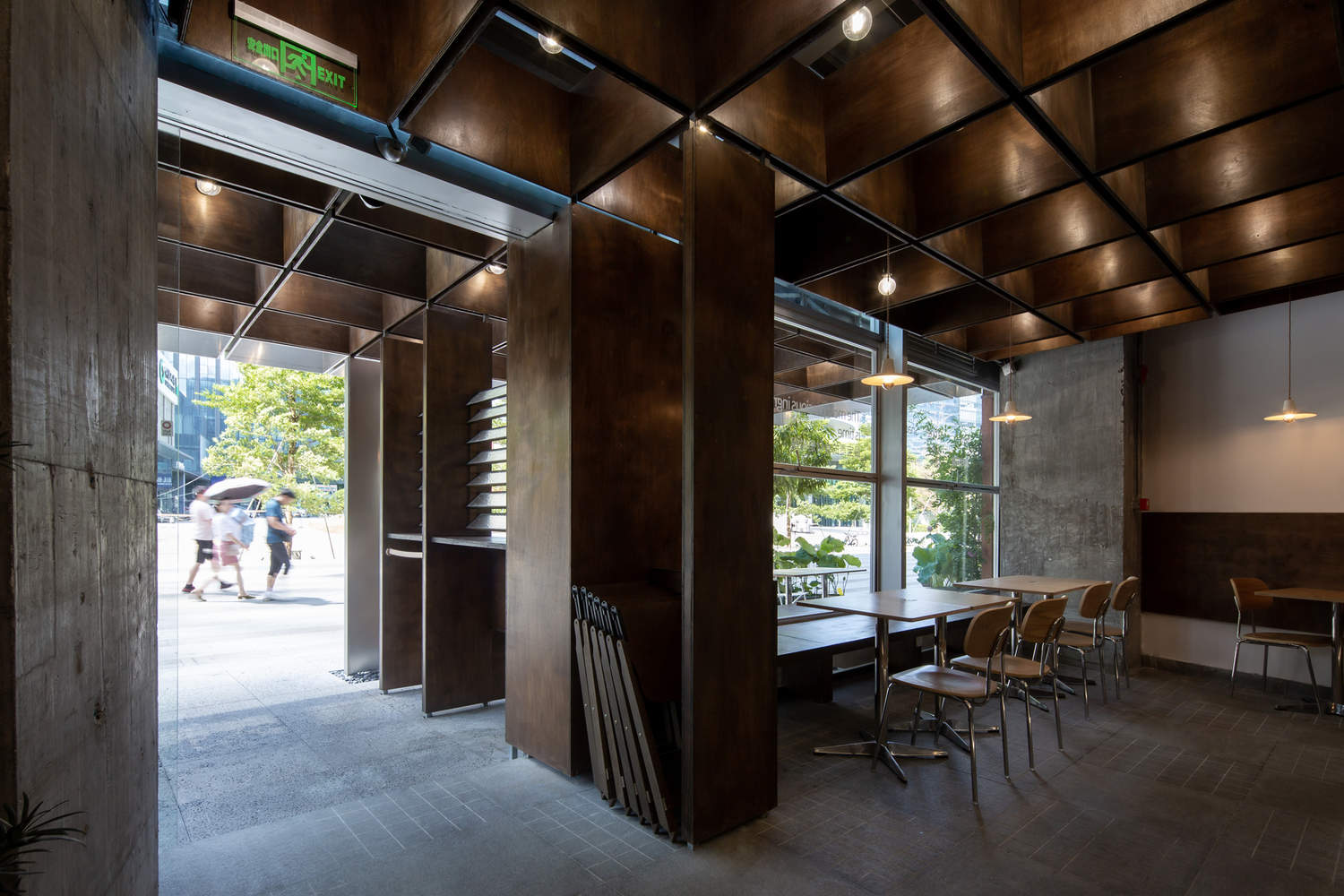 We introduced the concept of "dappled tree shadows" into the space. By filtering sunlight, the design creates a seamless connection between indoors and outdoors, establishing a unified atmosphere. This approach also addresses practical challenges, such as the narrow corners created by architectural structures and equipment, which previously fragmented the space. At the same time, the strong spatial blocks offer a distinct brand identity, bridging the philosophy of food with the continuity of spatial design.