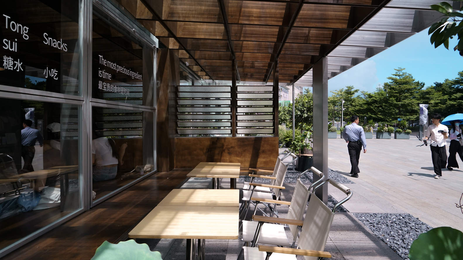 自然与文化的共鸣:项目以岭南地区的阳光为灵感,将自然元素与文化记忆紧密结合。设计师通过阳光滋养的甜点成分,唤起人们对炎热夏日午后在庭院中享受清凉的回忆,这种对地域文化的细腻捕捉,让空间充满了情感共鸣。同时,设计中对阳光的利用也体现了对自然的尊重和可持续发展的理念,展现了建筑与环境的和谐共生。