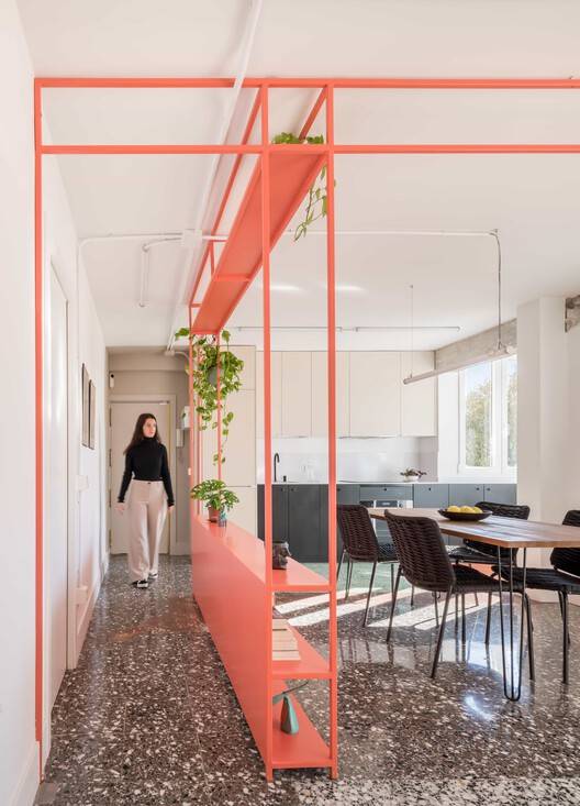 该项目尊重住宅的原始材料,展示了混凝土结构和各种水磨石地板,唤起了以前的分布。