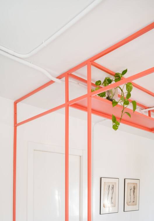 空间布局的巧妙:项目的空间布局设计展现了极高的灵活性和创造力。通过拆除多余的隔墙,建筑师将原本分隔的房间转变成一个开放的、多功能的空间,为居住者提供了更多的自由度。同时,保留了卧室的私密性,满足了不同功能的需求。为了增强空间的流动性和采光,建筑师大胆采用了外露的电线,避免了假天花板的使用,从而提升了空间的高度感和通透性。值得一提的是,定制的铁架单元既提供了储物空间,又起到了分隔空间的作用,同时又为空间增加了色彩和活力。这些设计都体现了对空间利用的极致追求。