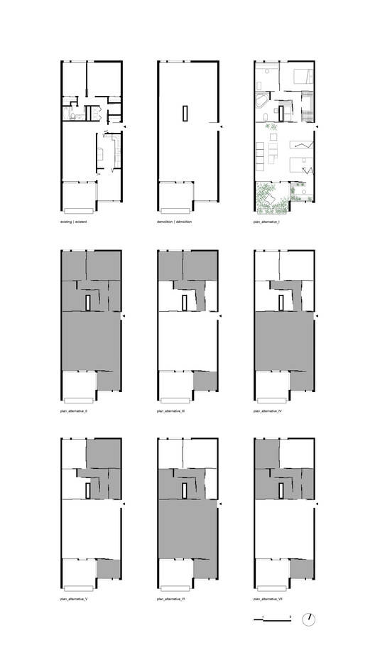 首先,彻底刮宫是必要的升级。因此,该单元摆脱了所有的建筑系统和过时的设备,露出了一块未经加工的混凝土,在北部和南部都有开口。利用交叉类型学、矿物物质性、自然光度和对可居住空间功能至关重要的机电系统,一种由滑动玻璃墙系列组成的建筑装置允许流体重新配置,同时阻碍了对大小的感知。国产设备的战略定位保持了恒定的物理和视觉渗透性,以抵消设备的紧凑性。
