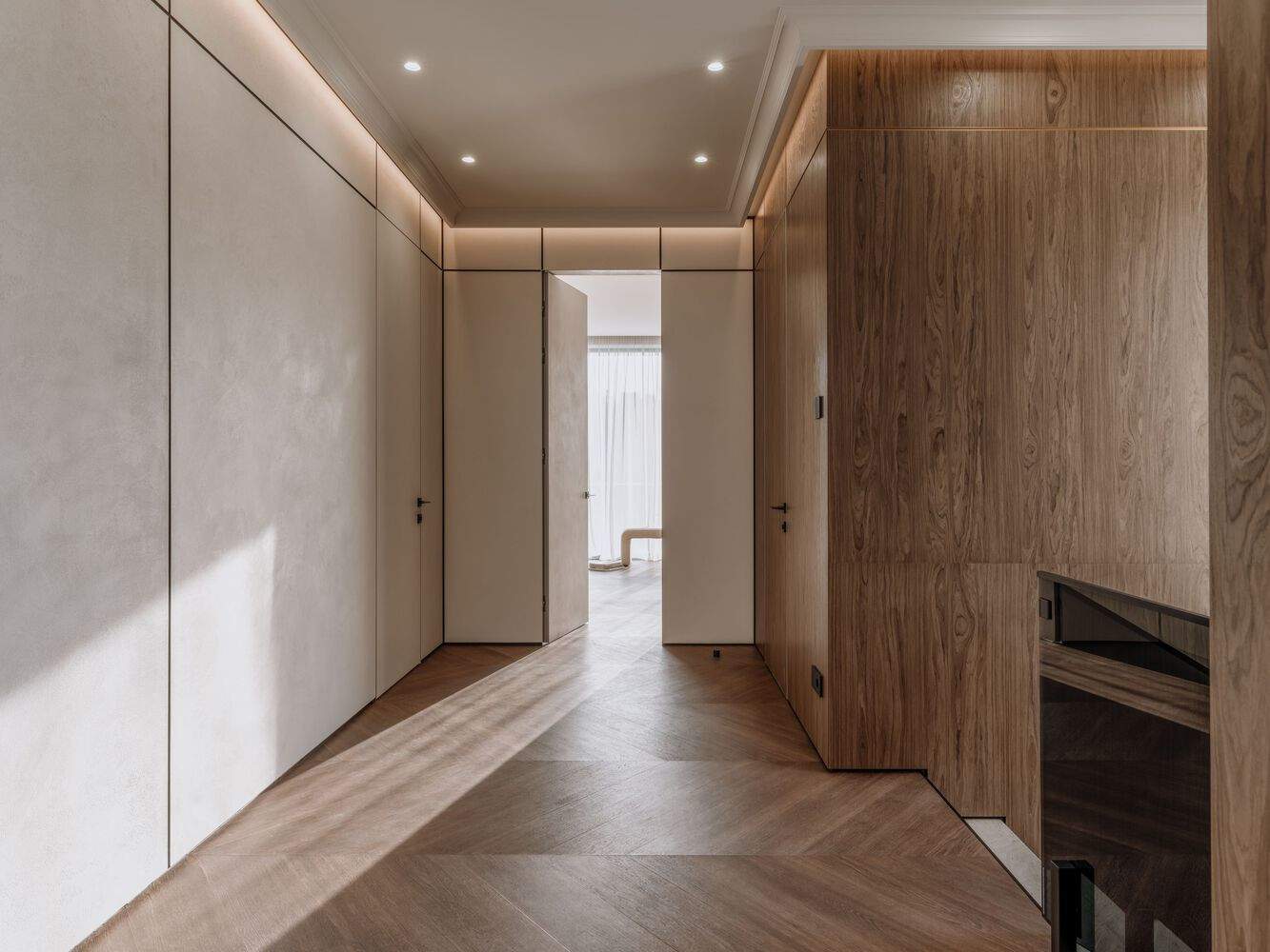 风格融合与个性表达:波罗达之家成功地融合了多种设计风格,并将居住者的个性需求融入其中。项目既体现了宫殿的精致、堡垒的可靠,又兼具了家的舒适。设计师在现代极简主义的基础上,融入了古典“黄金”时代的元素,例如墙面的装饰线和背光面板,创造出一种既现代又经典的空间氛围。同时,书房的“石头”装饰和儿童房的电动摇椅等细节设计,则体现了设计师对居住者生活方式和个性化需求的关注,使得住宅更具温度和情感,展现了独特的设计理念。