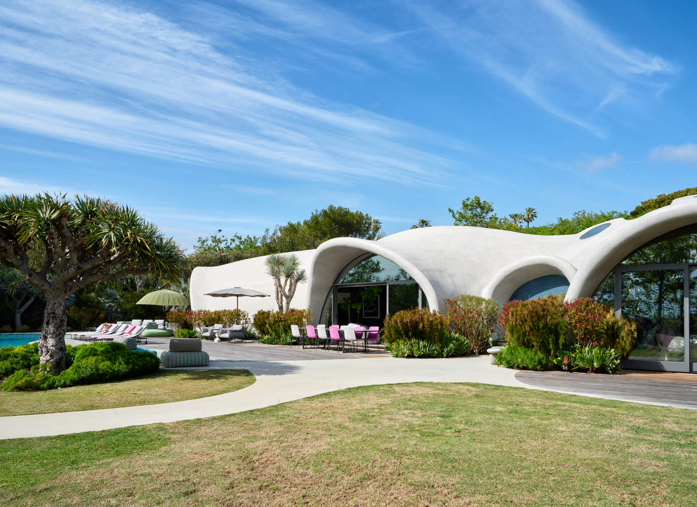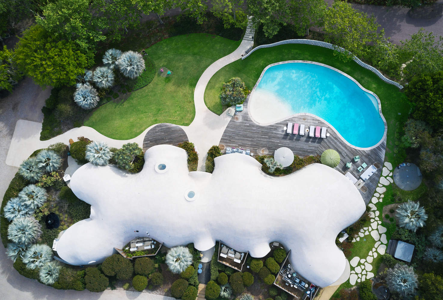 建筑形式与环境的和谐统一:项目的精髓体现在建筑形式与自然环境的完美融合。设计师巧妙地利用了自然原理,例如气压,来塑造不对称的薄壳结构。这种设计理念使得建筑本身成为一件生活雕塑,其流畅的有机形态与周围景观融为一体,营造出独特的空间体验。同时,建筑的选址、景观设计、自然通风和采光等被动设计元素的运用,也体现了对环境的尊重和可持续发展的追求。建筑师通过设计,实现了建筑与自然的和谐共生,为居住者提供了舒适、健康的生活环境。