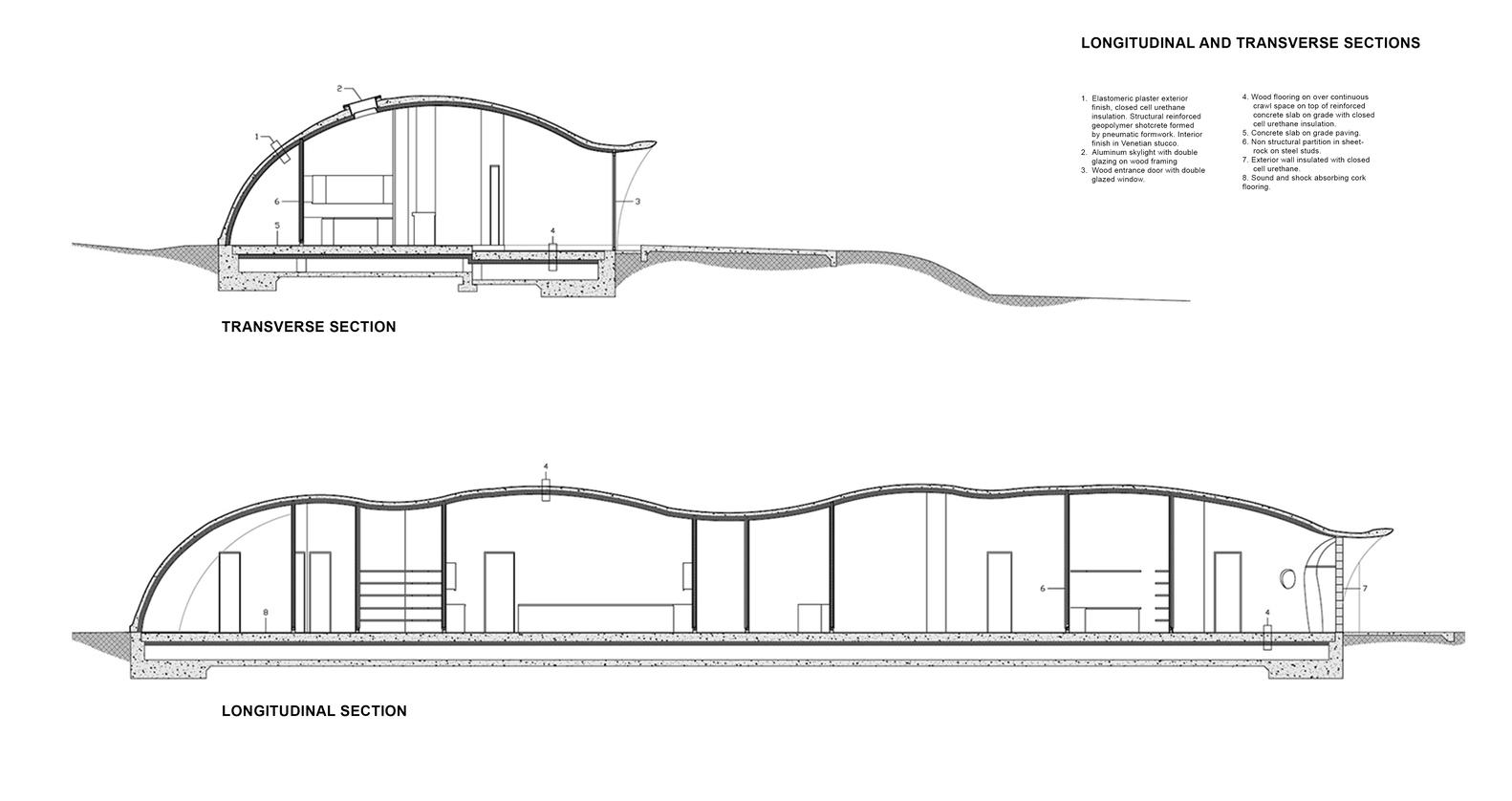 The Shell Home literally and figuratively emerges from the landscape, providing endlessly flowing living spaces tied to views framed by generous organic openings. The project's sinusoidally silhouetted shell is as naturally elegant as it is safe. The building shell curves continuously to articulate sculptural environments and define comfortable, biomorphic spaces. The design approach is derived from natural forces. Air pressure is harnessed to build and design the project. The resulting form elevates both sensations and performance and brings us closer to a synergy with nature.