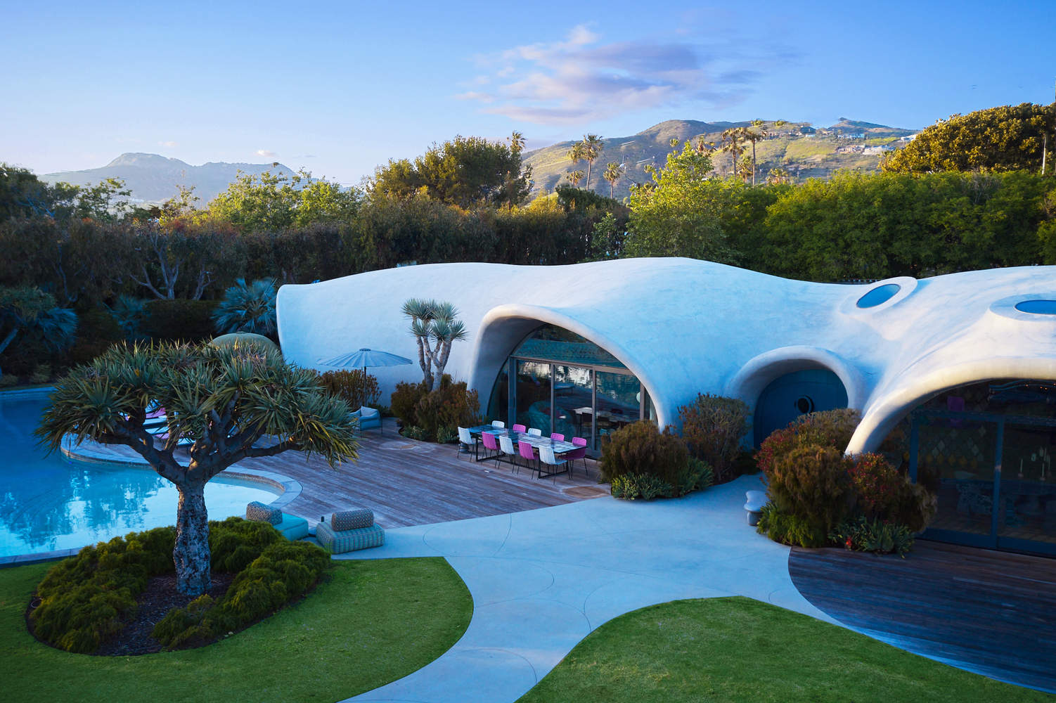 建筑师提供的文字描述马里布的壳牌主页项目挑战我们重新考虑如何设计和构建架构。该项目展示了如何利用自然原理来指导设计、提高性能并塑造建筑的外观。这种“找形功能”利用气压快速实用地设计和构建不对称的薄壳结构。由此产生的建筑是一座生活雕塑。它具有建筑表现力和高度弹性,在独特的流动有机形式中提供了结构和环境效率以及适应性。
