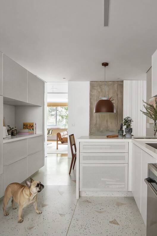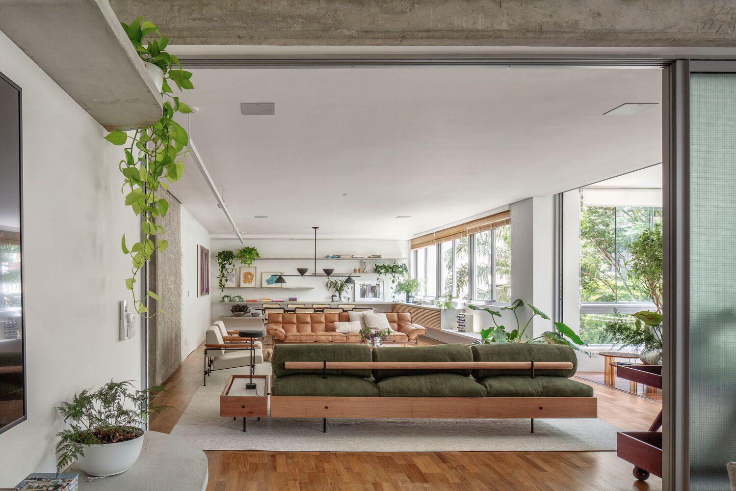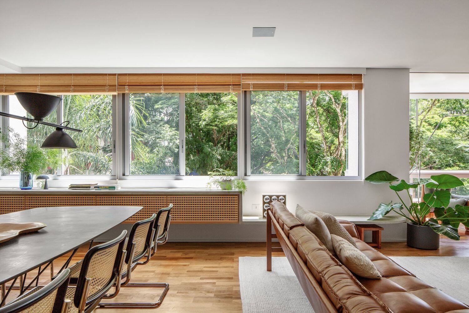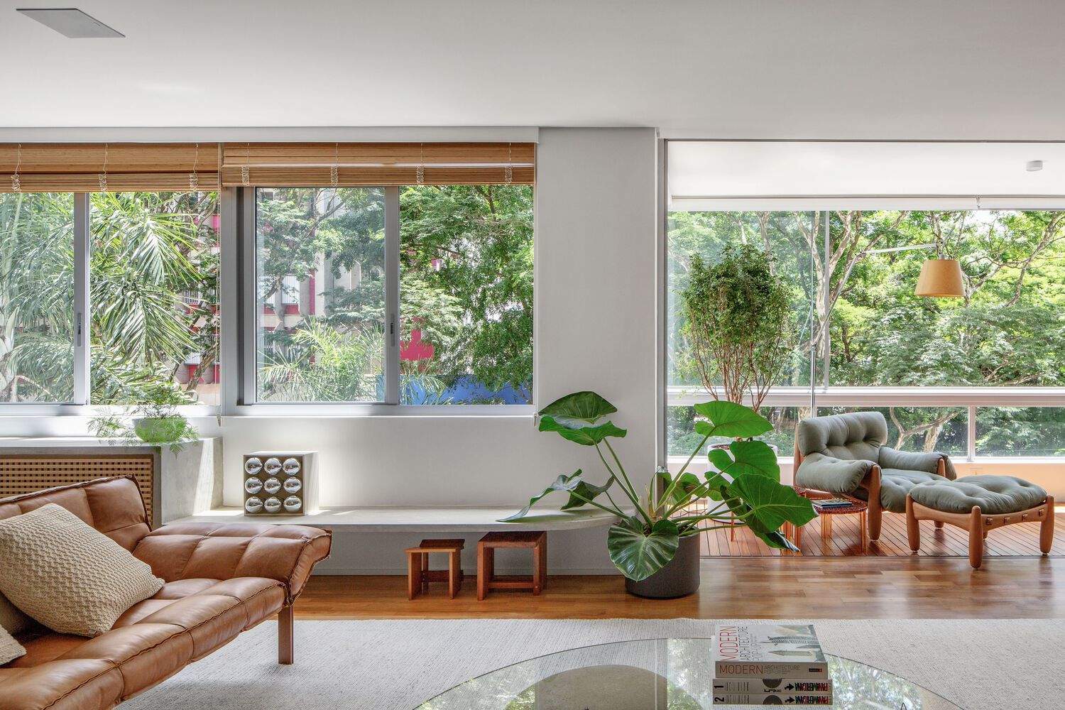 Text description provided by the architects. Located in a building from 1973 in the Jardim Paulistano neighborhood in São Paulo, the 260m2 apartment is on the 3rd floor, with a view of the treetops visible through all the windows of the living room.