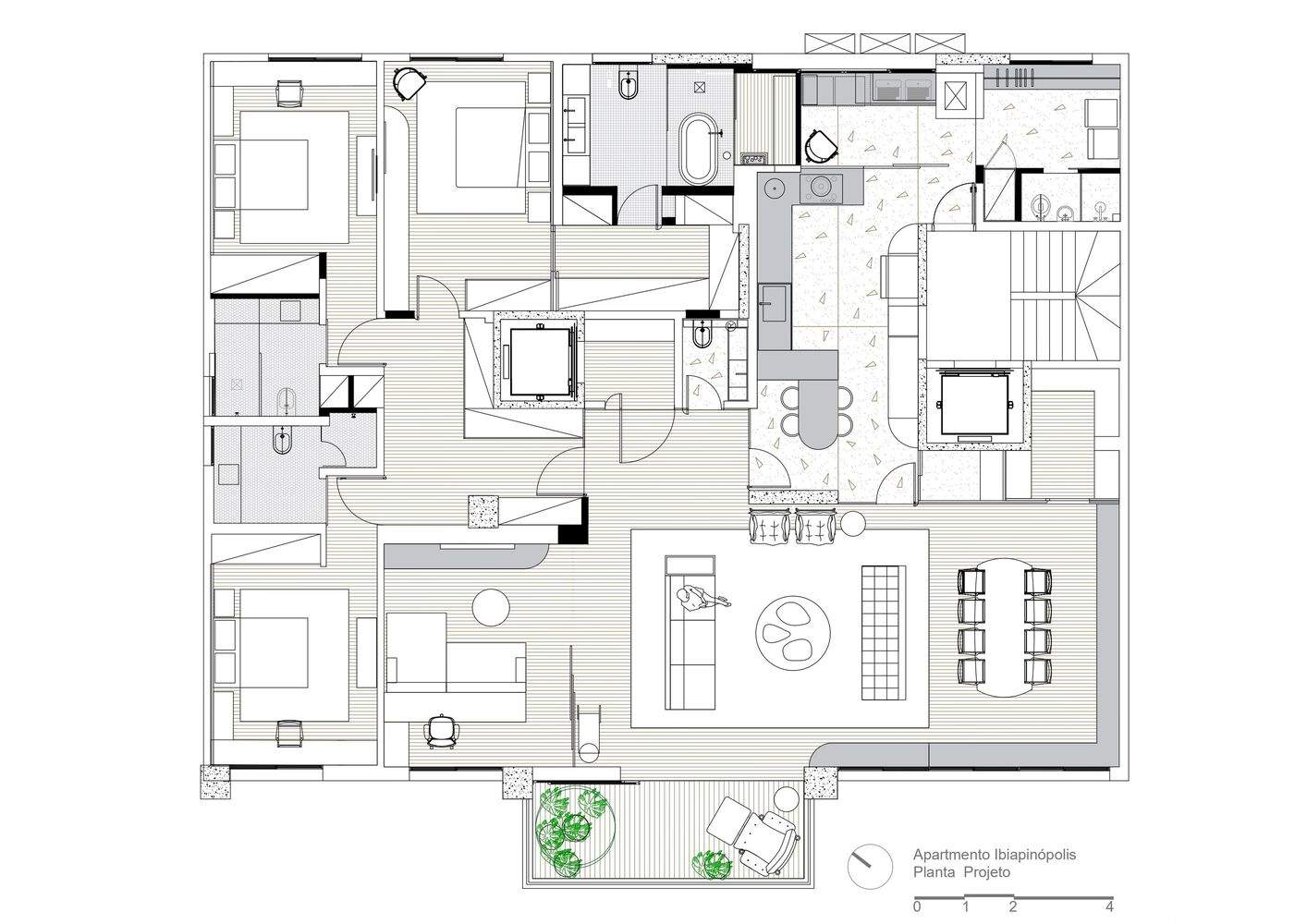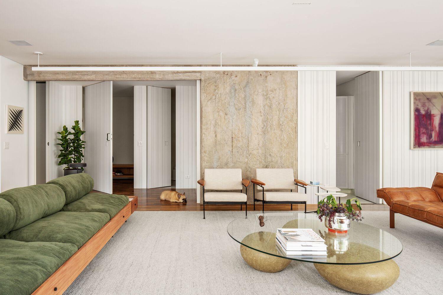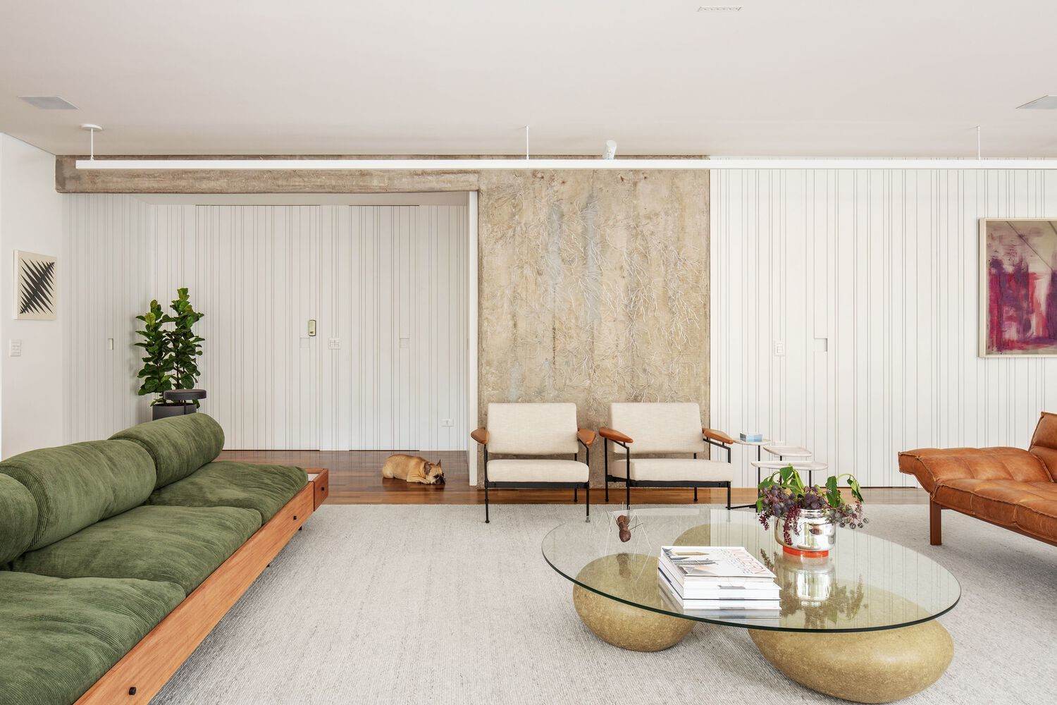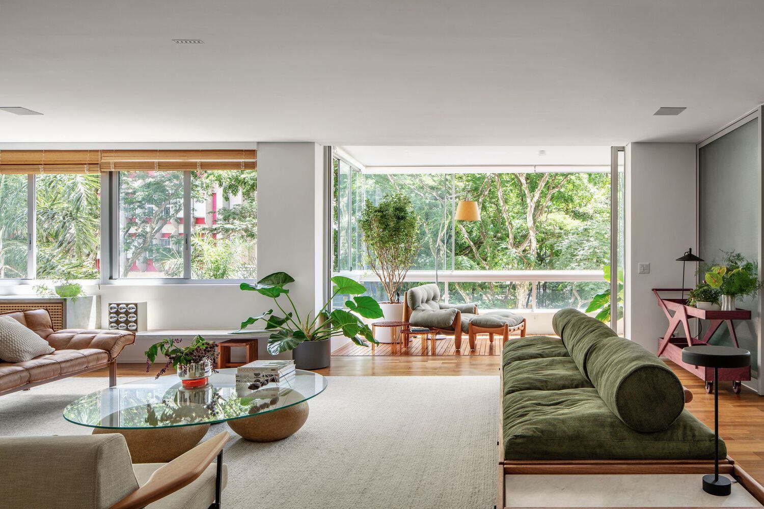 Text description provided by the architects. Located in a building from 1973 in the Jardim Paulistano neighborhood in São Paulo, the 260m2 apartment is on the 3rd floor, with a view of the treetops visible through all the windows of the living room.