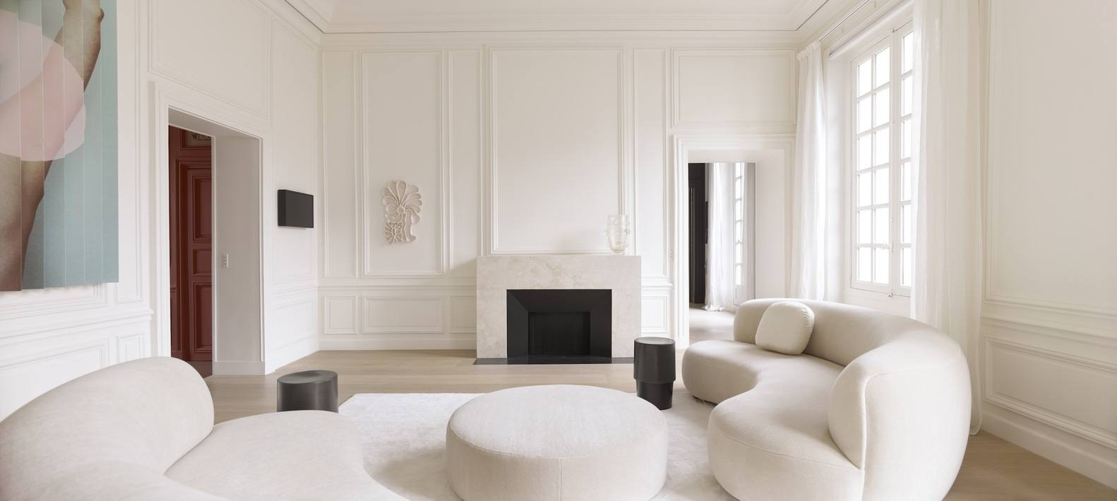 历史与现代的巧妙融合:巴黎公寓项目最引人注目的地方在于它成功地在历史建筑的框架内融入了现代生活方式的需求和设计理念。设计团队并未试图简单复刻历史,而是通过对原始建筑元素的尊重性保留和现代材料、设计的巧妙运用,创造出一种既具有历史韵味又充满现代感的居住空间。这种“对话”式的设计手法体现在材料的选择、色彩的搭配以及功能布局的创新上,比如新木地板的使用、黑木与大理石厨房的对比,都体现了设计者对不同时代元素的深刻理解和融合能力。这使得项目既保留了历史的厚重感,又展现了时代的活力。