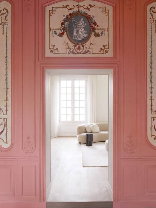 Text description provided by the architects. Located within the 4th arrondissement of Paris, near the Place de Bastille, Paris Apartment is situated in the prominent baroque Hotel de Sagonne, designed by Jules Hardouin-Mansart in 1668 as his personal Parisian residence. Converted from a single residence into multiple apartments in the mid-20th century, the unit underwent a partial renovation in the 1970s, which significantly altered some of the original architectural details. The Hotel de Sagonne is protected under the highest level of heritage classification in Paris, and any alterations are meticulously reviewed to maintain its historic features.