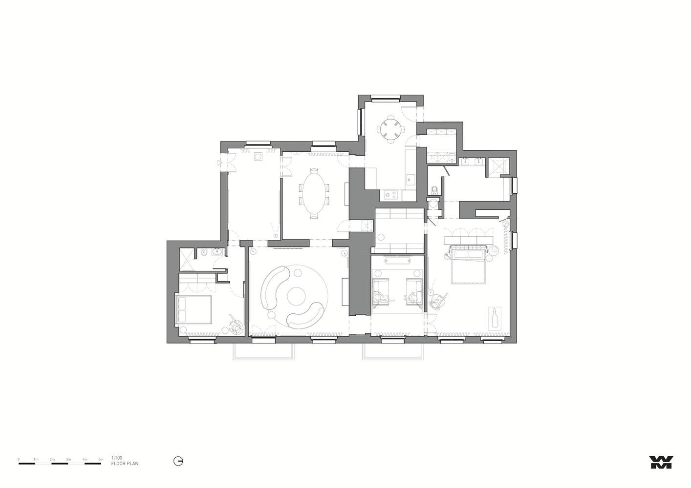 公寓的室内设计在恢复具有历史意义的关键建筑元素和拆除后来的增建部分之间取得了平衡,同时增加了现代风格的现代设施。原始元素被尊重地保留下来,而不是模仿。客户在公寓内展示了大量的澳大利亚和国际艺术品,包括挂在墙上的显示器上展示的数字作品。欧洲家具补充了艺术收藏,增加了空间的整体美感。