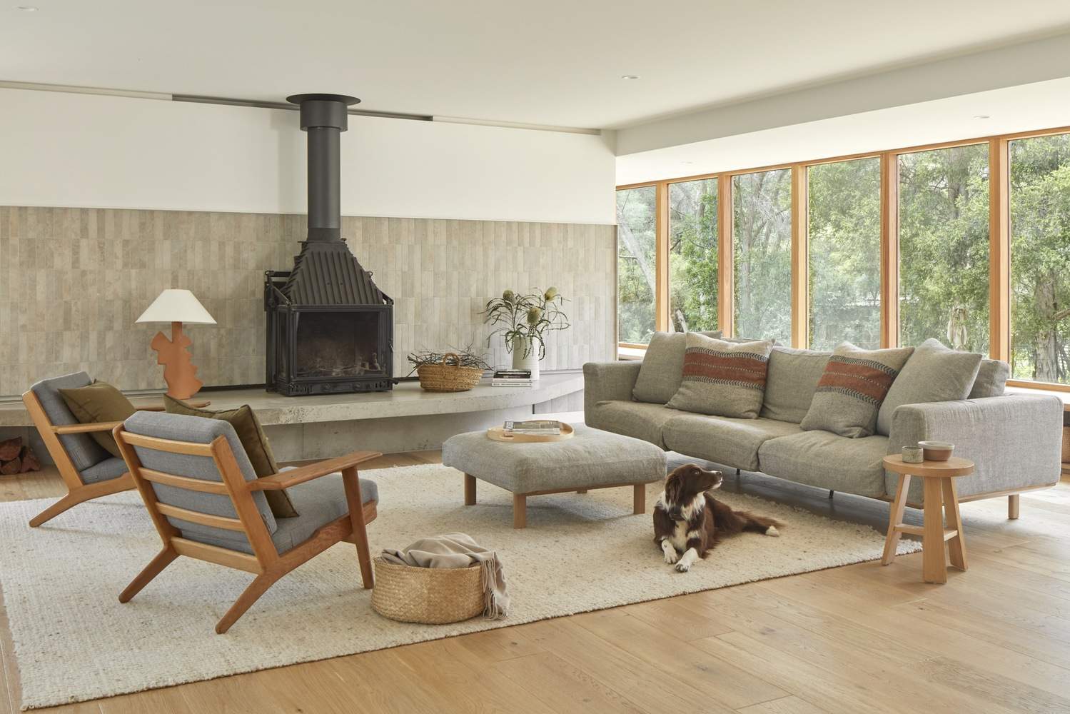 A private and beautiful, gum-lined setting provides the backdrop and inspiration for a palette of materials that is both relaxed and playful. The existing dwelling had relatively low ceilings and was economicallybuilt in its day. This took us down a path where horizontal views took precedence, and longer, lower spaces dominated. A large gabled new wing for children’s bedrooms is linked to the original house by alower glazed ‘gallery.’ A second ‘gallery’ hall flanks the original building, creating a separate entry to the main bedroom suite. The floor plan has been likened to a ‘pinwheel’ and successfully creates public andprivate zones and separation for parents and children while also taking advantage of opening up multiple vistas across the site.