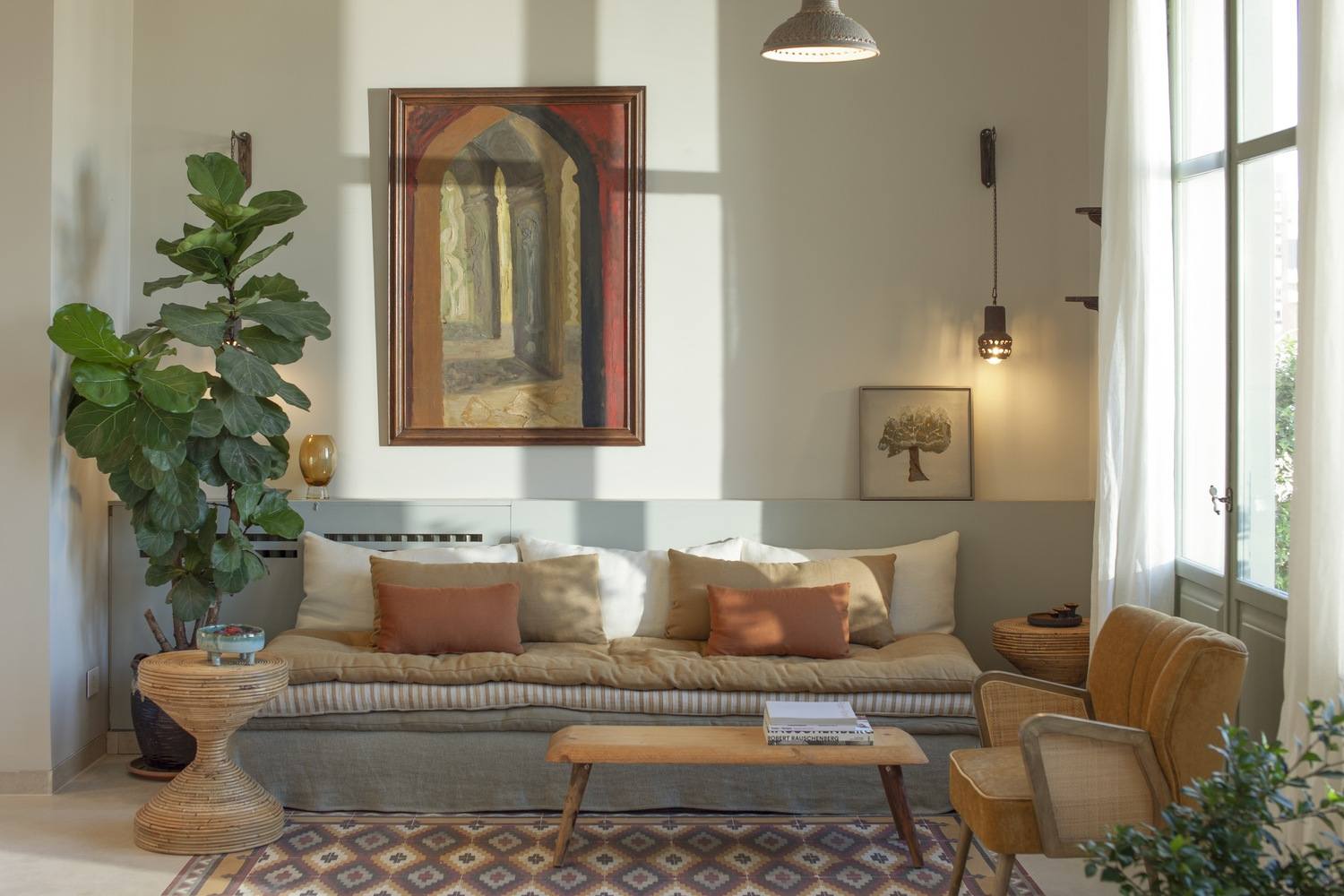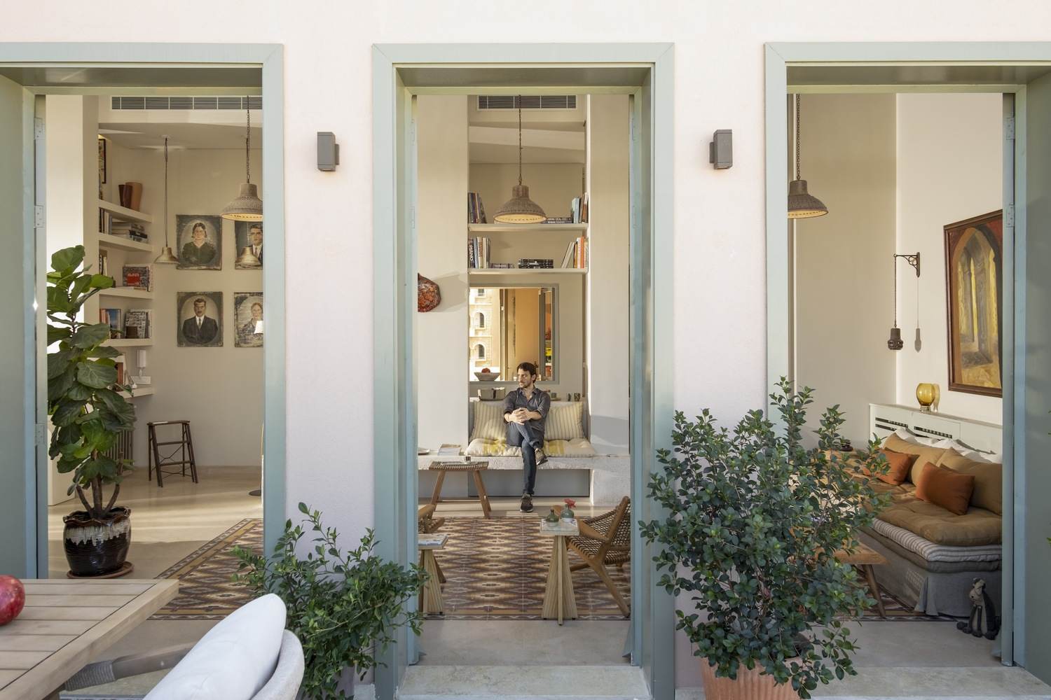 Upon entering the apartment, one is immediately immersed in the green atmosphere of the patio, which functions as a buffer zone between the urban surroundings and the interior spaces.From this vantage point, it offers an overall view of three distinctive features that define Lebanon: The bustling cityscape, the sea, and the majestic mountains.