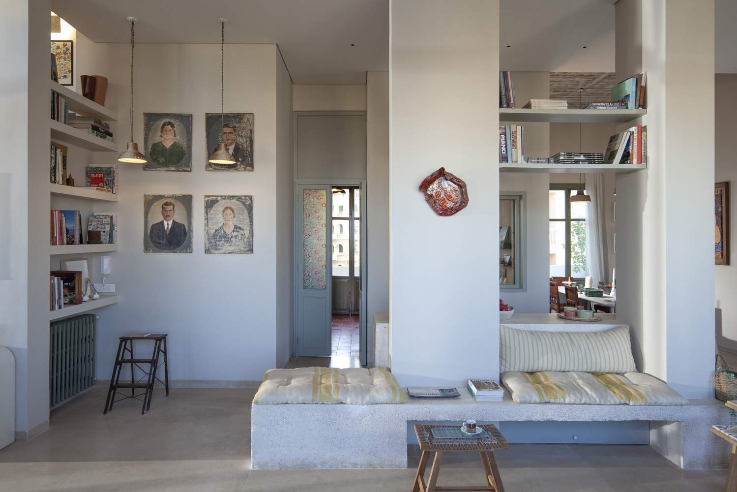 精髓之二:对材料和色彩的运用。项目的另一大精髓在于对材料和色彩的精心选择与运用。旧瓷砖的保留和重新利用,不仅是对历史的致敬,更是对可持续设计的实践。建筑师巧妙地将瓷砖作为定义每个生活区域的元素,并辅以米色、深红色和灰绿色的色彩组合,营造出和谐统一的视觉效果。这种对材料和色彩的运用,赋予了建筑独特的个性和灵魂。此外,庭院中植物的引入,也为空间增添了生机与活力,使整个项目充满着生命的气息。这种对材料和色彩的精妙掌控,是该项目成功的关键。