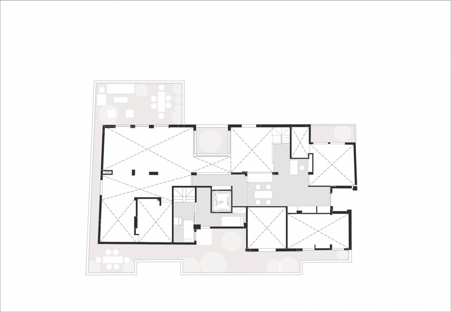 此外,这座房子还向黎巴嫩建筑遗产致敬,其三扇木凸窗让人联想到黎巴嫩的三重拱廊。原始房屋旧瓷砖的保护和再利用是新结构的关键设计原则。这些瓷砖被用作每个生活区的定义元素,生动的颜色在整个建筑组件中回荡:米色代表典型的地板和墙壁,深红色代表门和一些固定家具,绿色/灰色代表木凸窗和散热器。露台的设计灵感来自黎巴嫩传统的“售货亭”。从历史上看,这些建筑在人口稠密的地区起着封闭阳台的作用,让居民在看不见的情况下观察街道生活。与售货亭相反,露台嵌入房子里,作为一个视觉焦点,将视野吸收到房子的中心。