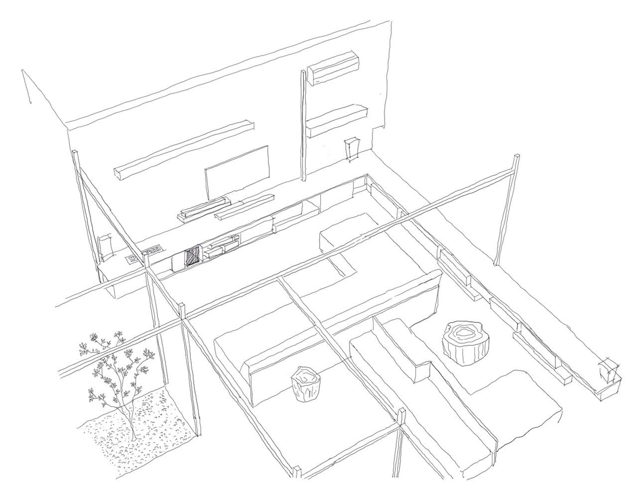 Tsuboniwais a common element in Japanese’s architecture since the 8thcentury, but over the time it got modernized. It can be read as a courtyard garden, planted enclosed a building, in this case, the apartment, something similar as a winter garden. This element was applied in the social area of the apartment, as a visual connection between the living room, the dining room and the kitchen.