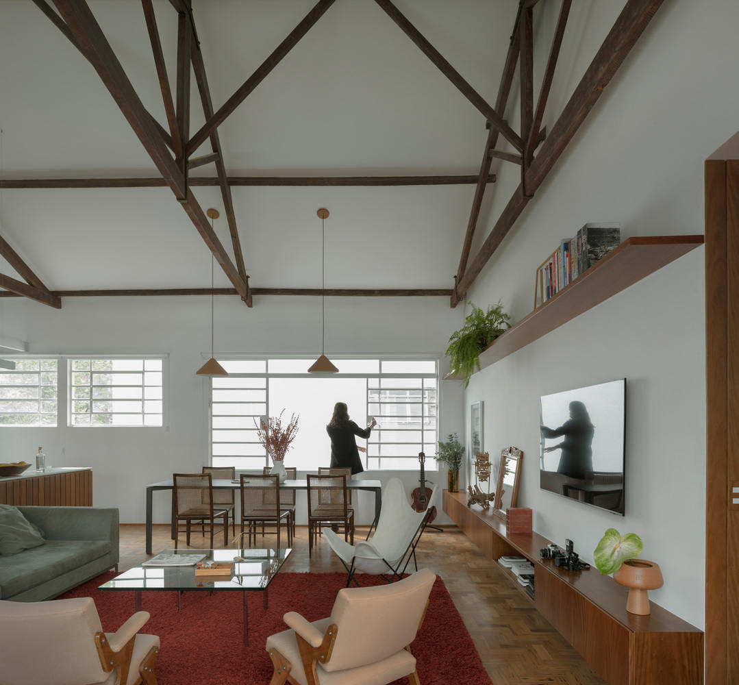 室内设计项目在装修过程中遇到意想不到的元素是很常见的。在Cravinhos大楼的顶层,我们遇到了一个四水桁架木屋顶,上面有雕刻的接缝和拉杆,这是一种只有手工才能达到的工艺水平。