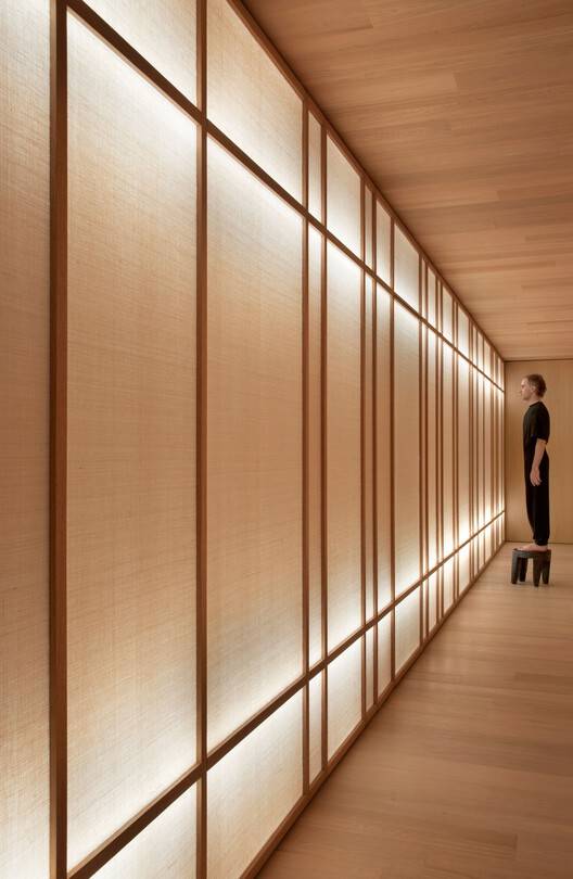 在入口大厅,使用黑木,使个人进入黑暗的环境,沿着通往光明的道路前进,从而在光明与黑暗之间营造出诗意的氛围,玩弄光明与阴影。