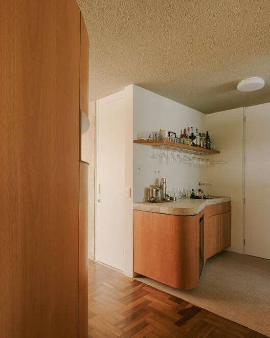 建筑师提供的文字描述Text description provided by the architects. The renovation of an apartment built in the 1970s in São Paulo aimed to adapt it to the needs of a young family. The original floor plan by architect Ruy Ohtake was restored and given specific updates - to enhance the programmatic aspects of this modernist dwelling.