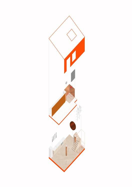 对空间特性的强化:项目的设计精髓在于对原有空间特性的强化。面对一个单向采光、空间有限的复式公寓,建筑师没有简单地进行改造,而是着力于挖掘和放大其独特性。通过对材料的巧妙运用,建筑师明确区分了不同的功能区域,并通过材料的质感和色彩差异来引导人们的视觉感受。例如,打蜡混凝土和砖色脊的对比,突出了楼梯的雕塑感,也增强了空间的纵深感。此外,镜面和玻璃砖墙的应用,都巧妙地解决了采光问题,并进一步强化了空间的功能性和视觉效果。这种对空间特性的强化,是项目成功的重要因素。