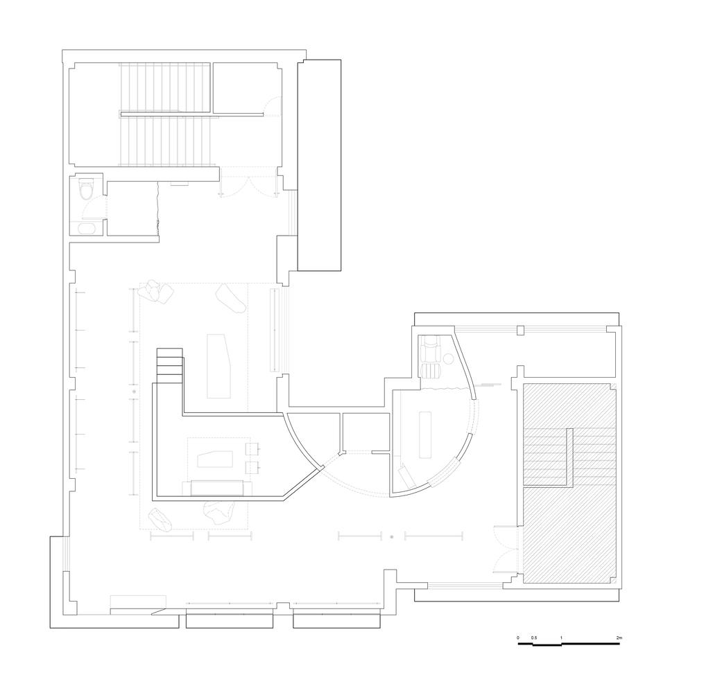 空间策略与历史文脉的对话:这个项目最引人注目的亮点在于其对狭窄空间的巧妙处理和对历史文脉的尊重。设计师将原本封闭的一楼空间改造为开放的室外走廊,不仅解决了空间局促的问题,还将内院与街道巧妙连接,营造出一种独特的“城市绿洲”体验。这种策略不仅提升了空间的通透性,更让建筑与周围的自然景观、历史环境融为一体。立面设计在保留传统建筑韵味的同时,融入现代元素,形成新旧对话,体现了设计对场地文脉的深刻理解。