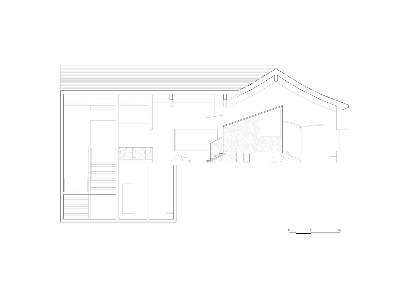 为了解决一楼3.5米宽的狭窄空间问题,该设计将其改造成一条开放的室外走廊,将内院与街道连接起来。这使得人们可以看到高耸的枣树和周围的自然景观,创造出一种宁静的“天堂”体验,邀请路人驻足欣赏。立面设计以现代窗框和钢结构细节为特色,在保留传统建筑魅力的同时引入了一丝现代风格。通过修改窗户开口并添加落地窗,空间变得更加开放,视觉上也得到了扩展。