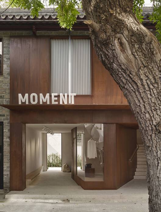 Text description provided by the architects. Moment boutique store is located in Cinnalane, Nanjing, where surrounded by a historic architectural complex, with the famous Ganxi Mansion nearby. The entire area features a uniform ancient style, which brings several challenges to the store's renovation. Situated on the second floor, the space is narrow, and the key design challenge was to integrate with the historic environment while creating a unique brand identity.