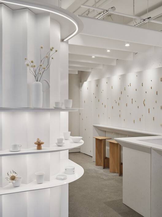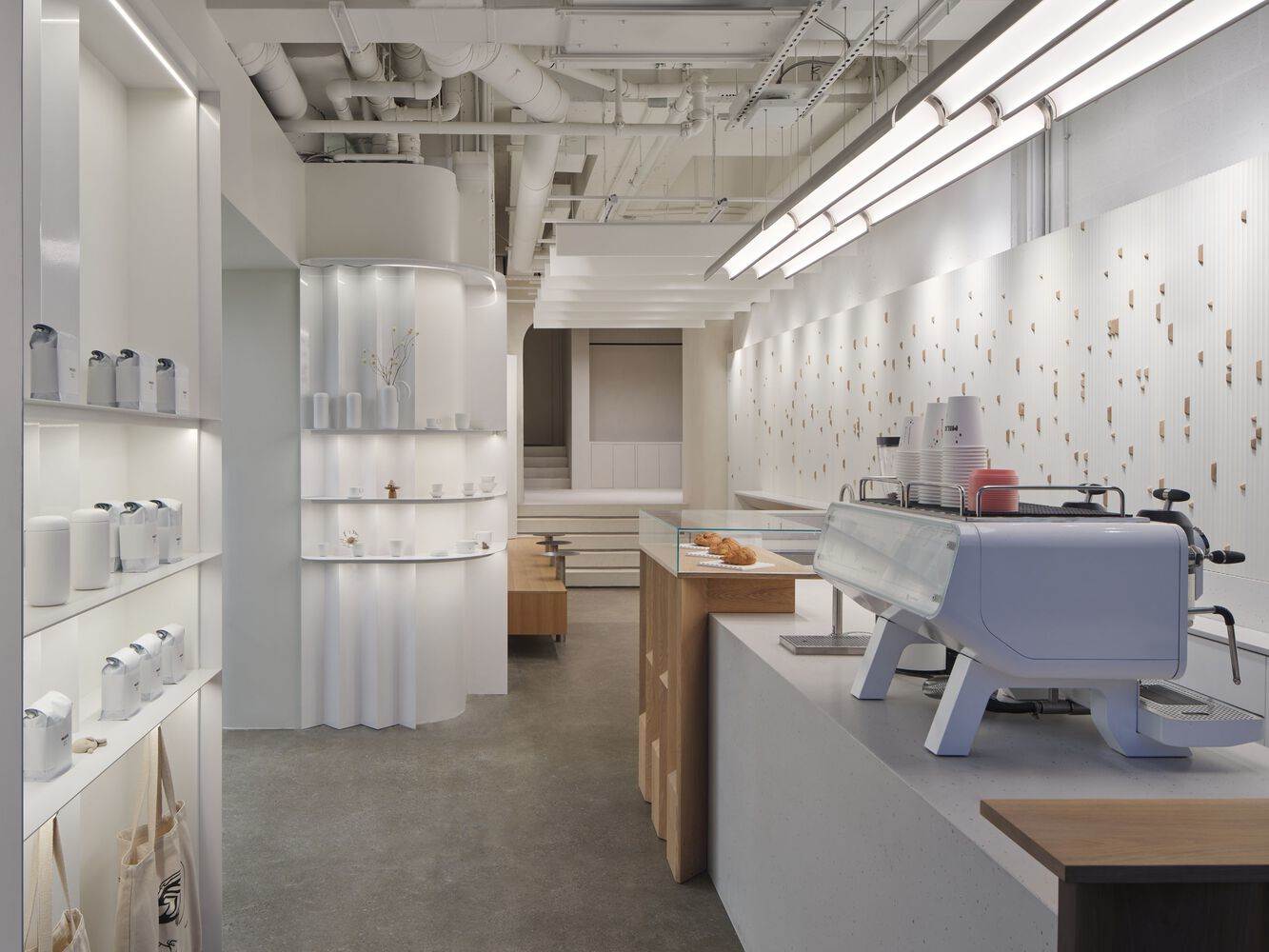 空间体验与客户互动的强化:除了视觉上的创新,该项目还着重于提升空间体验和客户互动。通过开放的布局,咖啡师与顾客之间建立了良好的视线交流,增强了空间的通透性和互动性。木制触点、舒适的座位模式(高脚椅与休闲座椅并存)以及精心设计的食品展示,都在细节上提升了客户的参与感和舒适度。这些设计元素共同营造了一个温馨、友好的环境,鼓励顾客在此停留,享受“Milky”带来的咖啡与愉悦。此外,项目对照明和表面的选择也与整体风格相协调,进一步增强了空间的整体性和视觉效果,为顾客创造了难忘的体验。