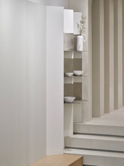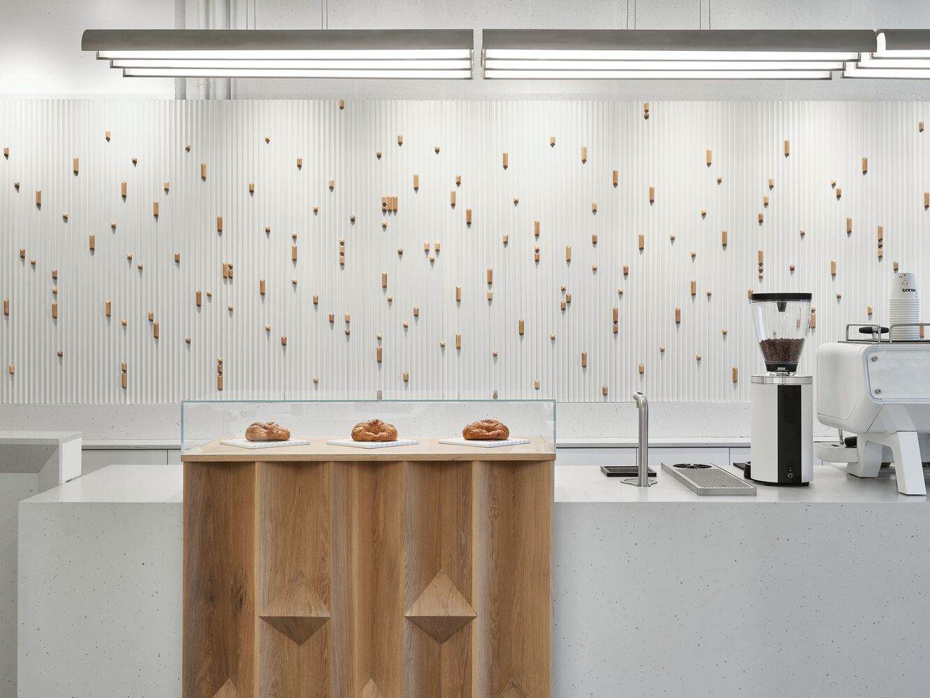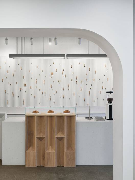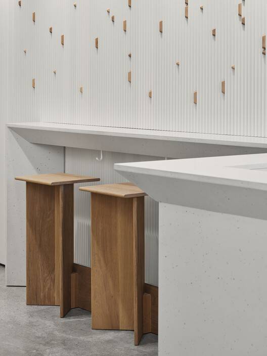 Text description provided by the architects. For Milky's third location, a third dimension - Milky's newest coffee shop at 1243 Dundas St W in Toronto, opened March 15th, 2024. The space, designed by Simone Ferkul Projects, evolves the iconic, innovative designs of the first two locations, but with a twist. Rather than being expressed in a new material, Milky's distinctive elongated diamond is unfolded into three dimensions. Metal, wood, and stone surfaces were used to create the 3d pattern. Creative thinking found functional uses for the shape which is apparent in the shelving, displays, and even a door handle.