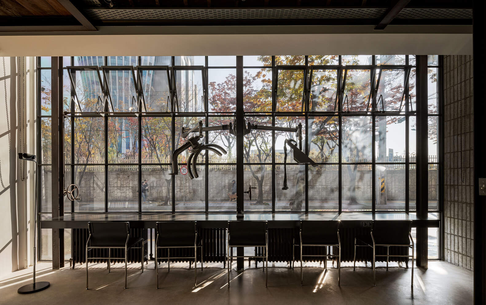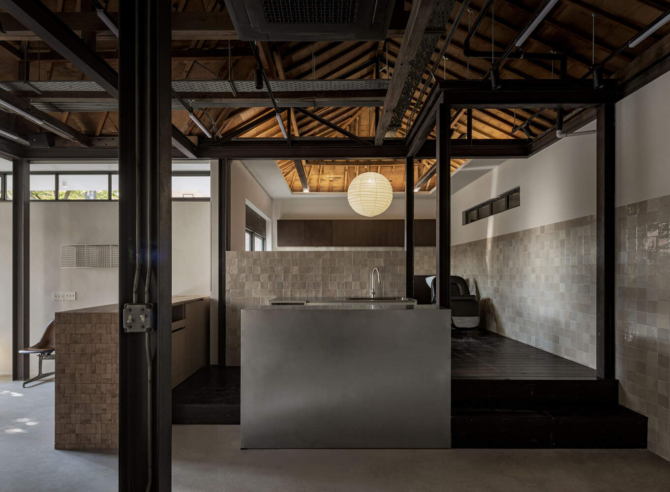 The second point was the unique characteristics of the site itself. The space featured a gabled wooden ceiling structure and grid-patterned framed windows on the façade. During the initial site visit, the design team was captivated by these existing architectural elements and decided to highlight them as key features. The aim was to incorporate the charm of aged elements accumulated over time into the branding.