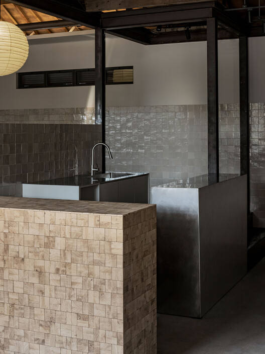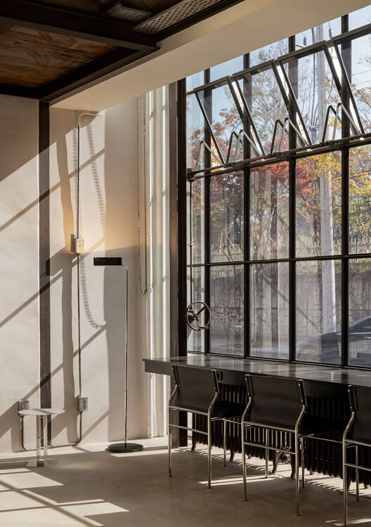 While the Yeonnam store conveys a casual and modern image, primarily using neutral-toned tiles and metallic materials to achieve a clean and sophisticated look, the Hapjeong store takes a different approach. By embracing the aged and weathered qualities of the existing building, the design aimed to evoke a sense of craftsmanship. The intention was to create a space that is unrefined yet exudes the brand's unique taste, turning the imperfections of the old structure into a defining feature.