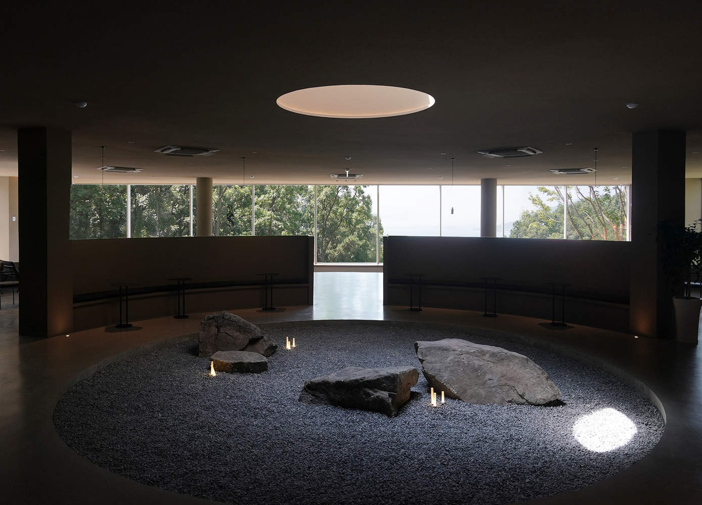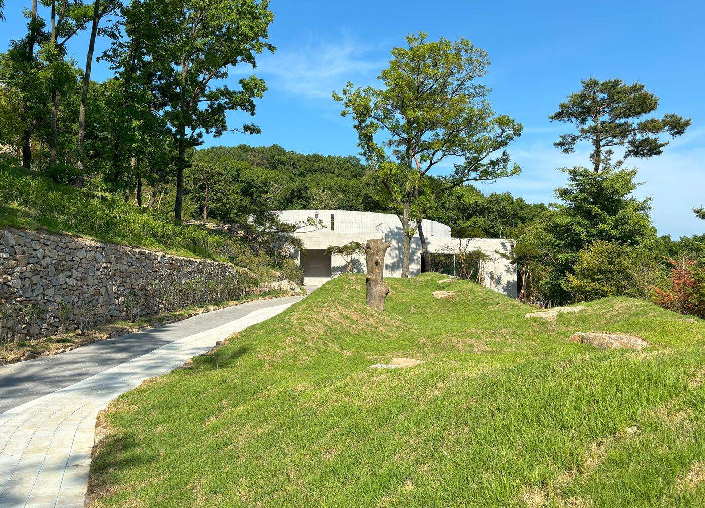 The circular, low walls are central architectural elements reminiscent of the "Dondae," offering visitors a sense of security akin to being cradled in a maternal embrace. These walls also strategically guide sightlines and movement, fostering concentration on the natural surroundings.