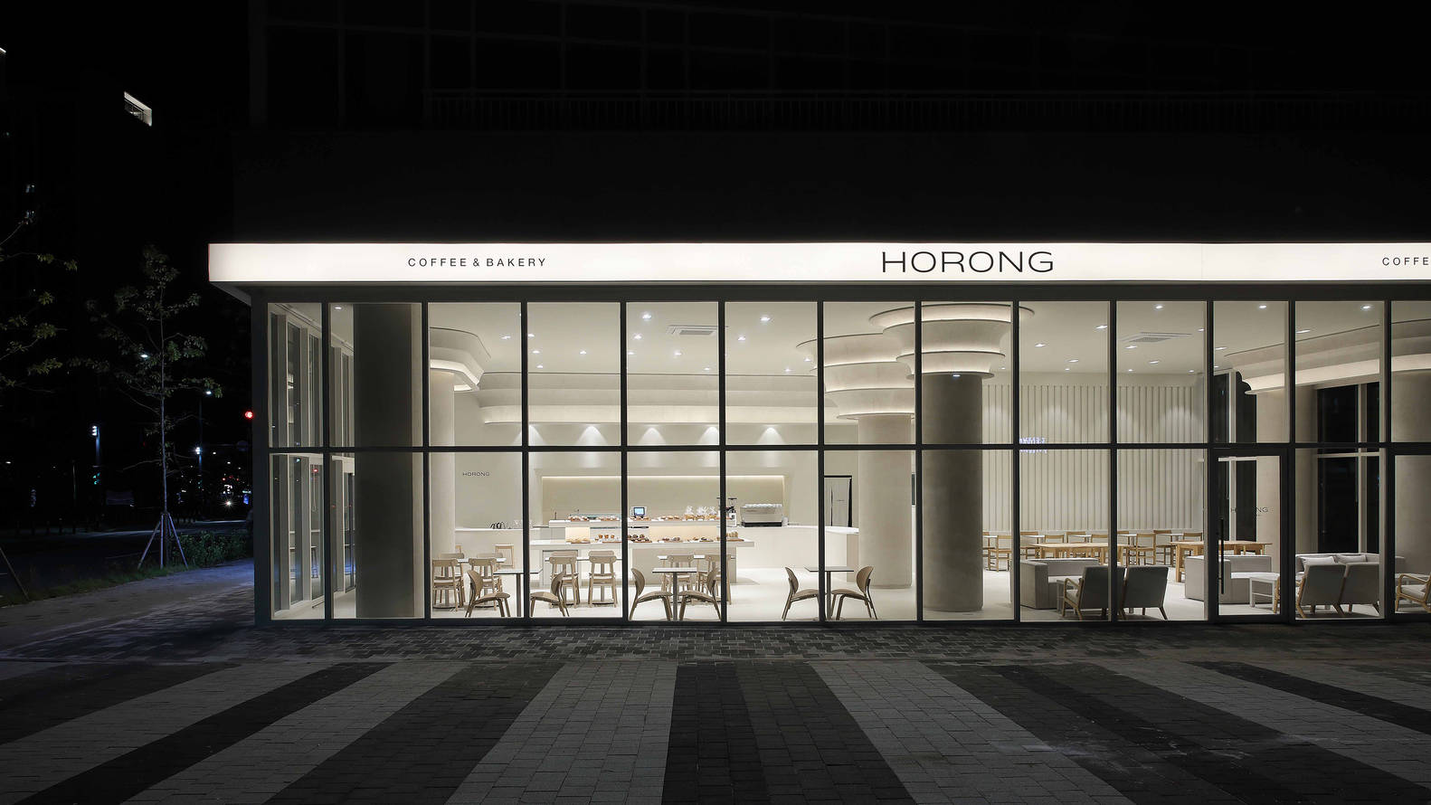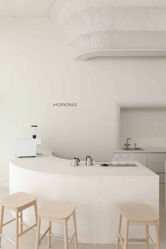 建筑师提供的文字描述Text description provided by the architects. Horong Bakery holds a warm story that begins with the gentle glow of a small lantern, flickering like a candle. On a dark night, as the soft and tranquil light of a lantern emerges, it warmly embraces its surroundings, creating a cozy atmosphere. With this sentiment in mind, Horong Bakery aims to offer a comforting space where people can take a moment to rest amidst the fast-paced city life.