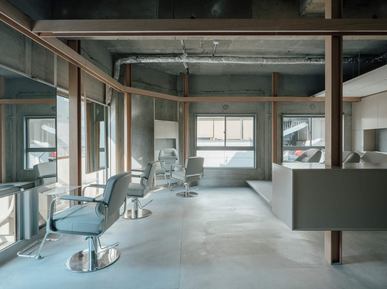 Text description provided by the architects. A project to open a hair salon in Hiroshima by a couple who run a modelling and hairstylist business from two bases in Tokyo and Hiroshima. They live apart from each other and can only spend a short time together, so they wondered if they could project their lives between Tokyo and Hiroshima into the space of their shop, which is not their home.