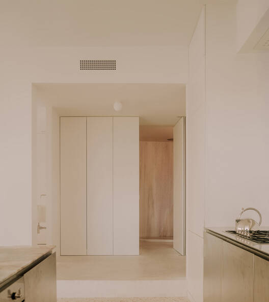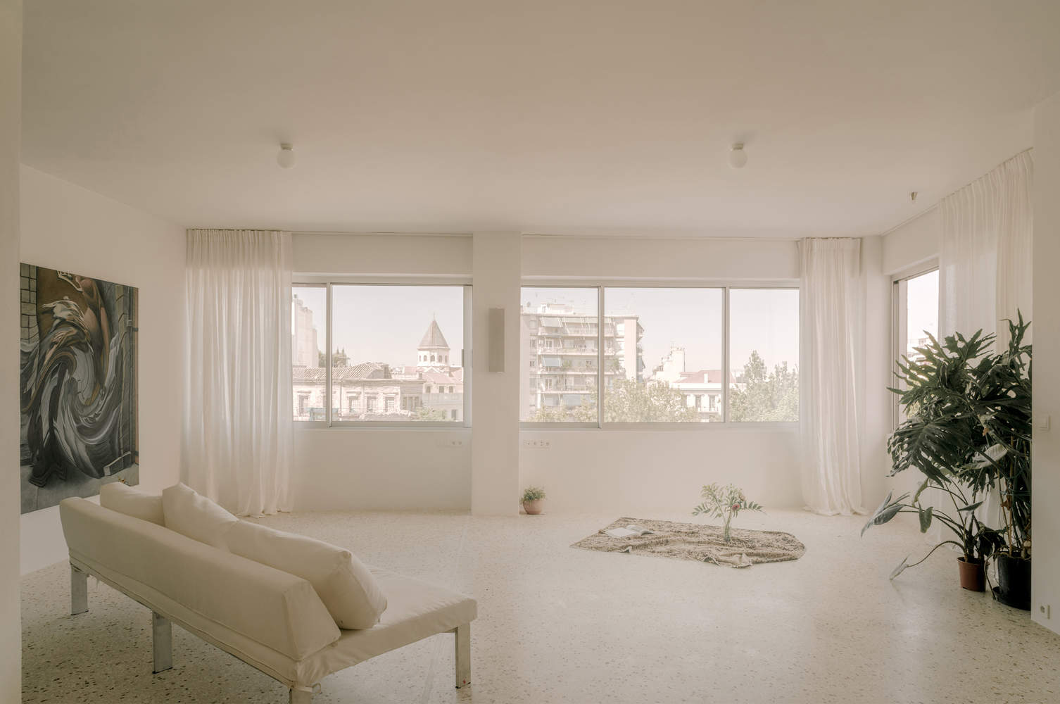 Text description provided by the architects. The project concerns the transformation of a former industrial space into an apartment, that can potentially host temporary art exhibitions. The renovation took place in a postwar office building, a dominant typology in the centre of Athens, that posed several challenges. Characteristic of this typology is the insufficiency of domestic infrastructure, like plumbing/sewage installations (toilets located externally per floor), and adaptation limitations for heating/cooling systems. These restraints, in combination with the mixed-use program, informed the design methodology to a large extent.