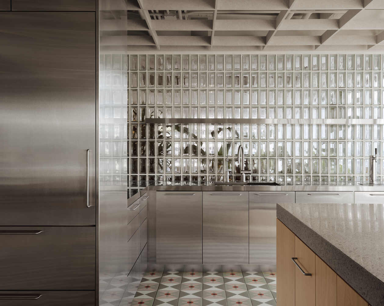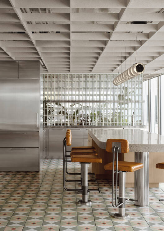 设计概念的深度融合:该项目最令人印象深刻的方面在于其对设计概念的深度融合。它巧妙地将20世纪60年代的建筑美学与现代设计语言相结合,创造出一种既复古又前卫的独特氛围。设计师并没有简单地复刻历史元素,而是从贝聿铭设计的标志性建筑Place Ville Marie Tower中汲取灵感,并将其转化为当代设计语汇。例如,入口处的几何屏风墙,不仅是对蒙特利尔建筑历史的致敬,更营造了一种独特的空间过渡感,引人入胜。这种设计策略体现了设计师对历史、文化和现代设计的深刻理解和巧妙运用。