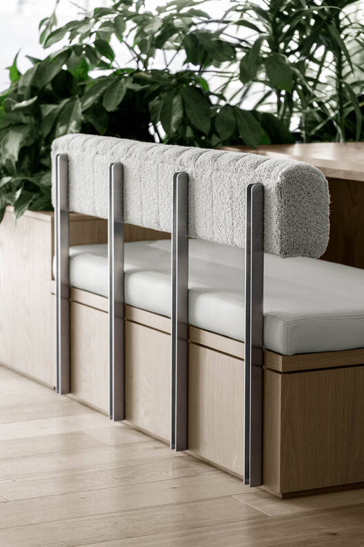 建筑师提供的文字描述广场大厦内,将20世纪60年代美学的永恒魅力与现代设计的流畅线条融为一体。该项目重新构想了传统的开放式工作空间,营造了一种既温馨又精致的氛围。