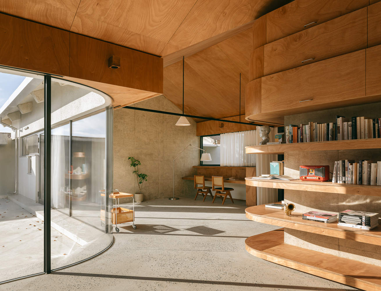 屋顶的山墙端向外延伸,延伸到场地的边界。从上面看,房子呈十字形。空间布局均匀分布,创造了一系列终点——祖父母、父母、孩子和来访客人的私人房间。祖父母和许多老年夫妇一样,更喜欢单独的卧室,房子的尽头允许这种微妙的划分。如果这些端点被视为延伸的肢体,那么房子的核心——它的连接空间——是细长的,被巧妙地分割开来,容纳了各种公共功能。这种安排反映了多代人生活的节奏,根据需要提供接近和分离。人们在这些空间中移动,在家庭聚会和更私人的互动之间切换。