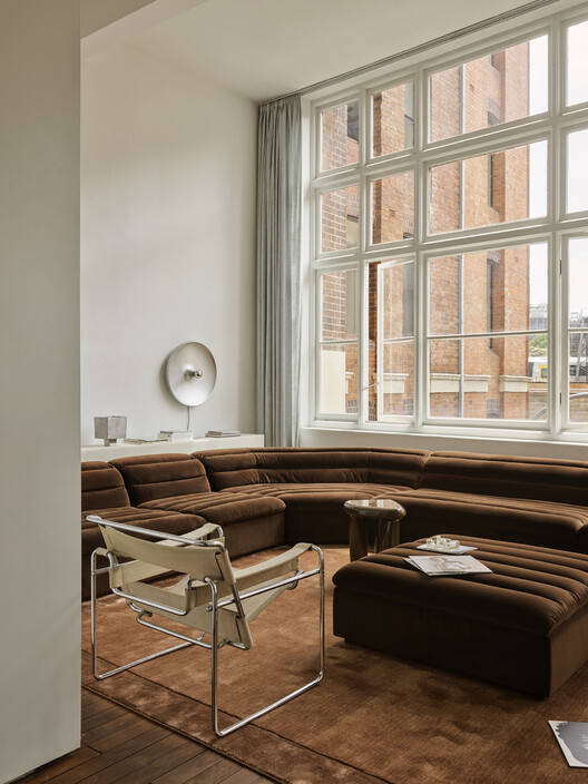 新旧元素的巧妙融合:项目的精髓在于新旧元素的巧妙融合。在保留了历史建筑原有风貌的基础上,设计师融入了现代设计元素,创造出一种既具有历史韵味又充满现代气息的独特空间。项目通过精心挑选的家具、艺术品和灯光,营造出一种精致而舒适的氛围。特别值得一提的是,标志性的FLOAT沙发、Marcel Breuer的Wassily椅子以及Isamu Noguchi的Akari灯光等经典设计元素,与新兴的澳大利亚和国际艺术家的作品共同构成了引人入胜的视觉景观。这种新旧元素的碰撞,不仅丰富了空间的层次感,也体现了设计师对于设计语言的深刻理解和独到见解。