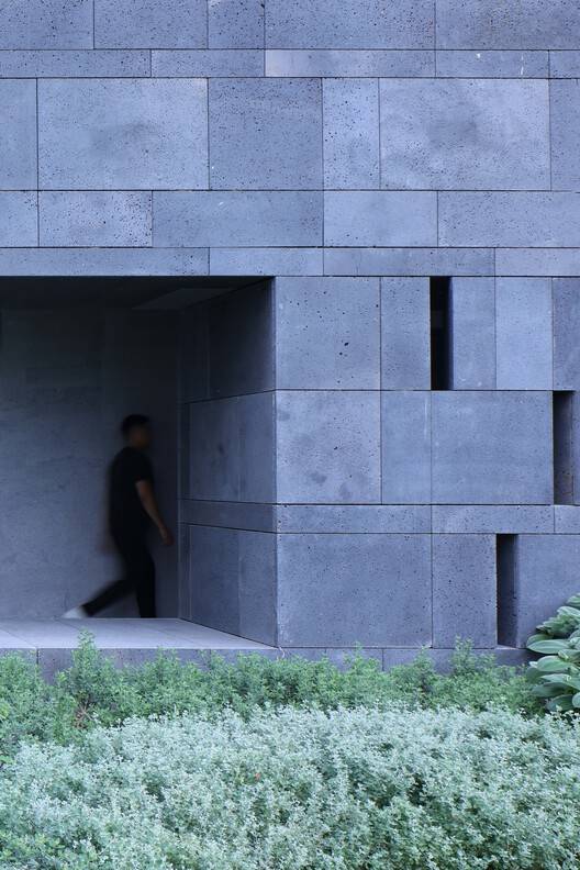 Text description provided by the architects. In 2024, SHISUO Design Office was commissioned by Aranya to reimagine the lobby spaces within the podium levels of two mountain-view residences in Sanya. The original architecture leveraged the site's elevation differential: while one side of the podium nestles against the hillside, a narrow lightwell pierces through the interior; the opposite side connects to terraced platforms, forming the residents' homecoming gateway. A covered corridor acts as a prelude to homecoming. Walls clad in volcanic rock create framed window openings that capture exterior landscapes or assemble into a perforated screen, allowing light to filter through gaps. These contrasts of light and shadow introduce rhythm to the elongated space, mediating between the exterior and interior realms.