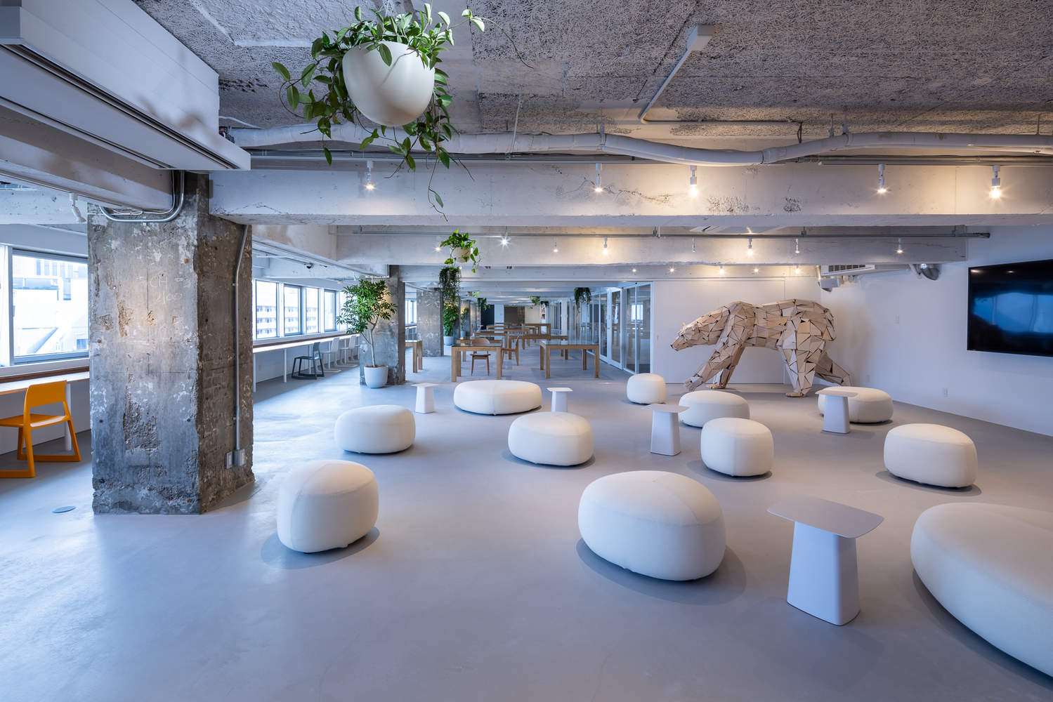 Text description provided by the architects. This is the interior renovation for the new office of the Earth Centric Design Lab (ECD), a newly established subsidiary of TBWA HAKUHODO. The company regards the Earth as an important stakeholder and aims to shift the focus of all its designs from "human-centered" to "Earth-centered." Based on this concept, we carried out a super Earth-friendly interior renovation project that provides space and time for thinking about the Earth.