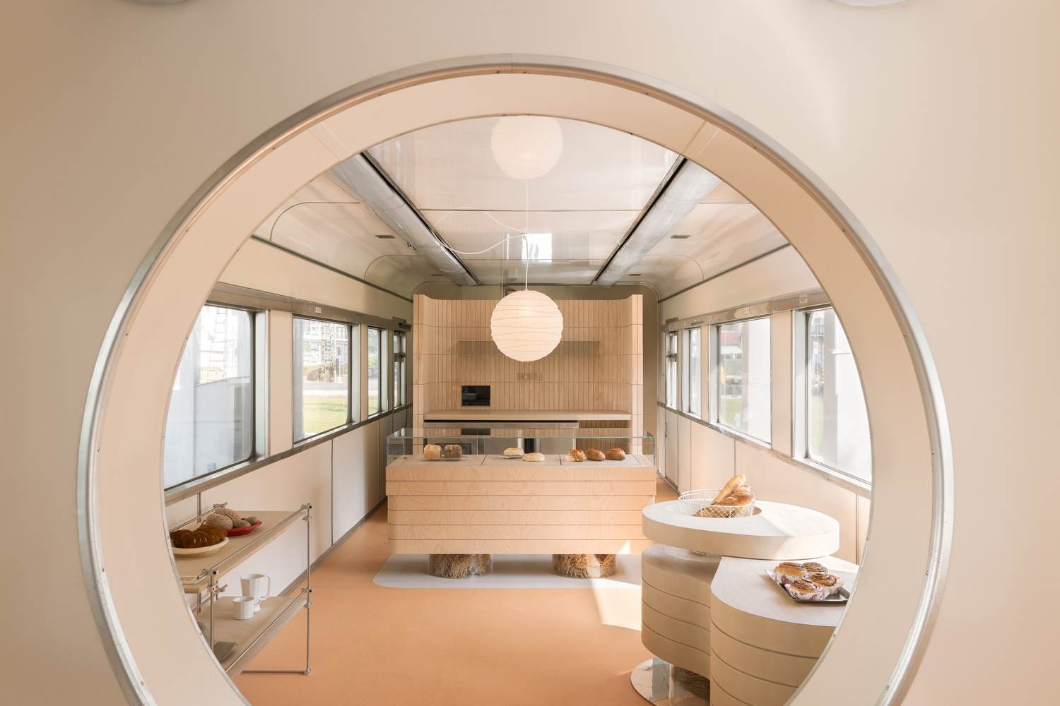 空间设计的精妙运用:从提供的图片中可以看到,设计团队在有限的空间内进行了精心的布局。他们巧妙地利用了轨道车的内部结构,结合烘焙工作室的功能需求,创造出高效且舒适的工作和体验环境。无论是空间的利用率,还是采光和通风的设计,都体现了设计团队的专业素养。这种对细节的关注和对空间尺度的把握,使得整个项目在视觉上简洁流畅,功能上实用高效。项目的成功在于它不仅仅是一个简单的改造工程,更是一次对空间潜力的深度挖掘和重新定义。