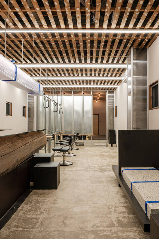 空间氛围的营造与持久价值的体现:该美发沙龙的设计理念体现了对空间本质的深刻理解。设计者致力于创造一个安静、持久的空间,这与当今快速变化、追求短暂流行的设计趋势形成了鲜明对比。项目的核心在于尊重场地历史文化,通过对过去文化层面的细致解读,赋予空间新的价值。这种设计理念不仅仅关注外观,更注重空间的内在品质和使用者的体验,旨在打造一个随着时间推移而愈发显现其价值的场所。这种对持久价值的追求,在商业空间中尤为难得,展现了设计者对建筑的深度思考。