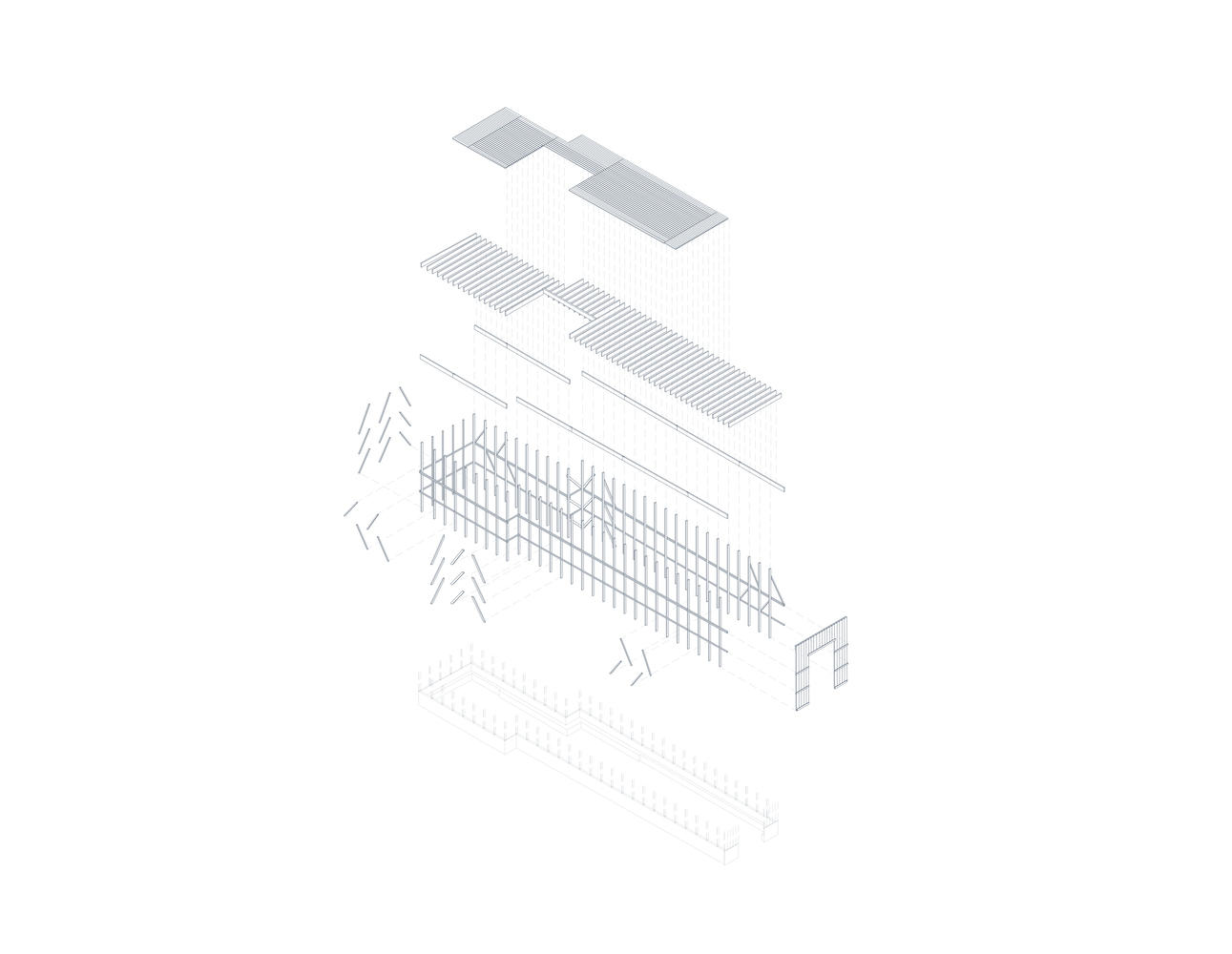 This final completed architectural work aims to convey concepts of sustainability, freedom, flexibility, and resilience by integrating the "non-traditional" construction space culture into its urban environment, and thus become part of the renewal and regeneration process of the Pueblo Libre historical memorial area.