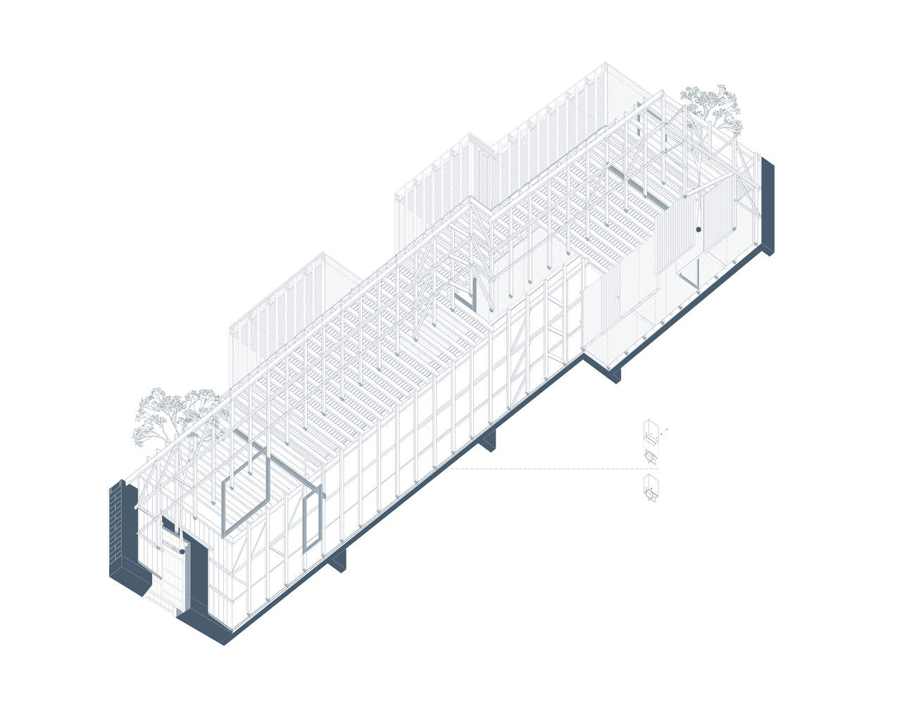 这一项目在近三年的时间里逐步构思并落地成型,建造与居住同步进行,其间经历了长时间的停工与经验积累。在建设过程中,它已然成为一个木工与建筑工坊,同时不断增建并改造为临时住所,最终定型为一个集居住与工作于一体的空间;且时至今日,其建造工作仍在持续推进,这个项目更多地通过过程而非结果来展现自身特质。