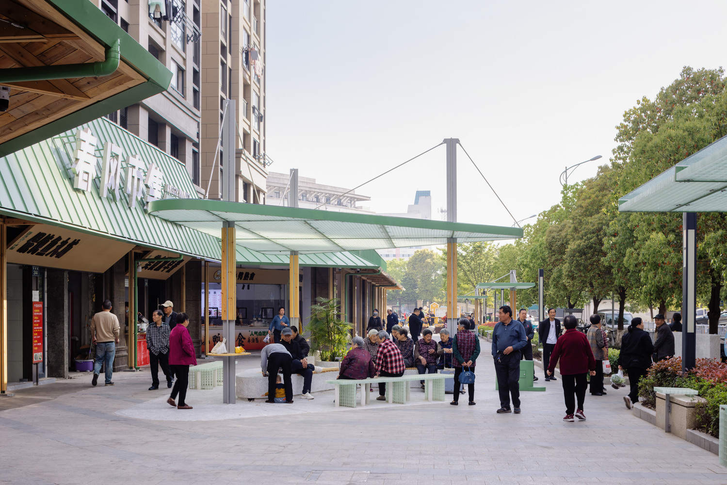 曾经人烟稀少的裙楼商业焕新成为一个开放式的街区。通过项目改造,不仅仅在重建建筑,更是在重塑社区共生关系,市场不仅是商品交易场所,更是人们相聚交流、感受生活的空间。