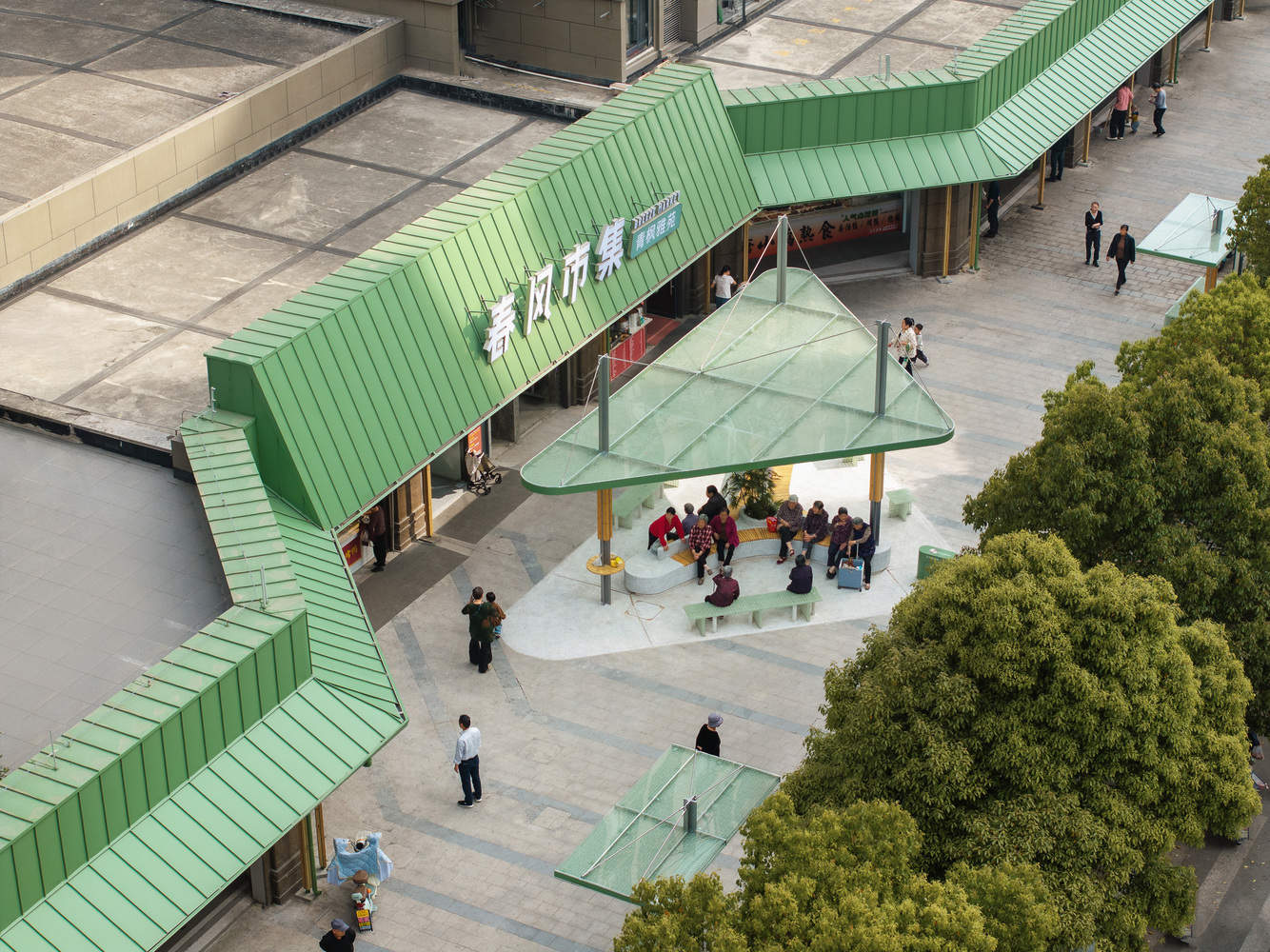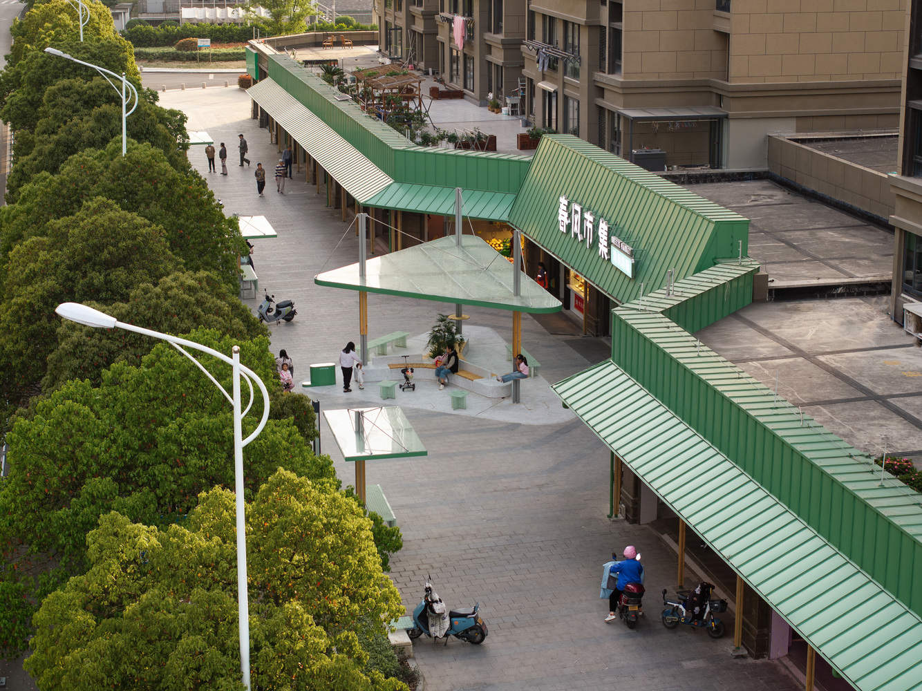 The project is located in Jiaochuan Street Community, Zhenhai District, Ningbo City, Zhejiang Province.. With the shift of modern consumption patterns and the continuous impact of online commerce on offline commerce, podium commerce is facing difficulties, and the business format is on the verge of being completely destroyed. The use and maintenance of podium commerce buildings are also almost stagnant. The composition of nearby residents and their real needs are key factors in revitalizing this area. Due to the fact that the surrounding population is mainly composed of elderly people and demolition workers, their main demands are for daily living, shopping, and leisure. Therefore, we have introduced vegetable markets and small-scale public spaces - pocket parks - into the block, revitalizing the area with a lifestyle