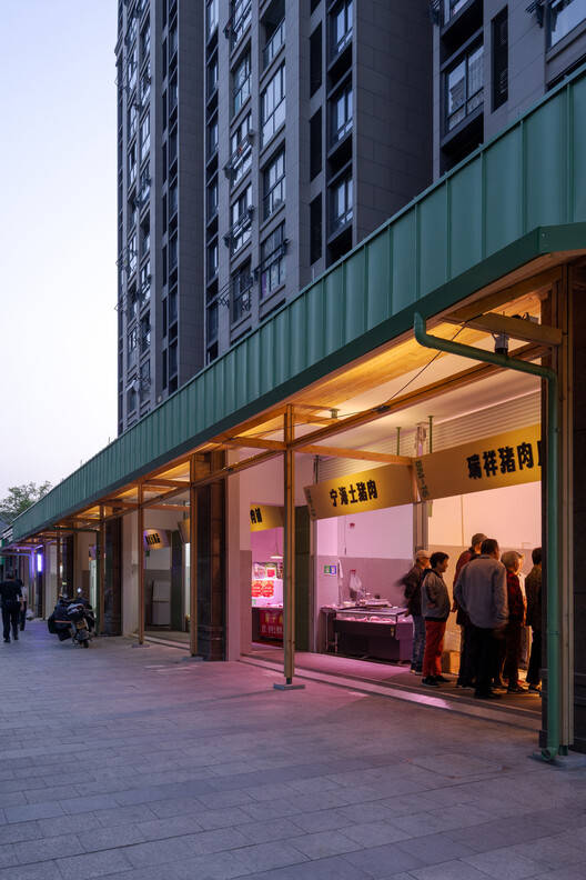 项目概览与策略: 这座名为“春风市集”的项目,是对位于宁波市镇海区老旧街区的一次巧妙改造。其核心在于应对现代消费模式变迁和线上商业冲击下传统商业的困境。设计师深入调研了社区居民的需求,尤其是老年人和拆迁人员的生活习惯,将菜市场与口袋公园巧妙结合,植入街区,创造了一种全新的生活方式。这种策略不仅仅是简单的空间改造,更是对社区文化和社会关系的重塑。项目“链接”的关键词贯穿始终,连接了新建筑与老街区,商户与邻里,构建了人与人之间更紧密的联系。