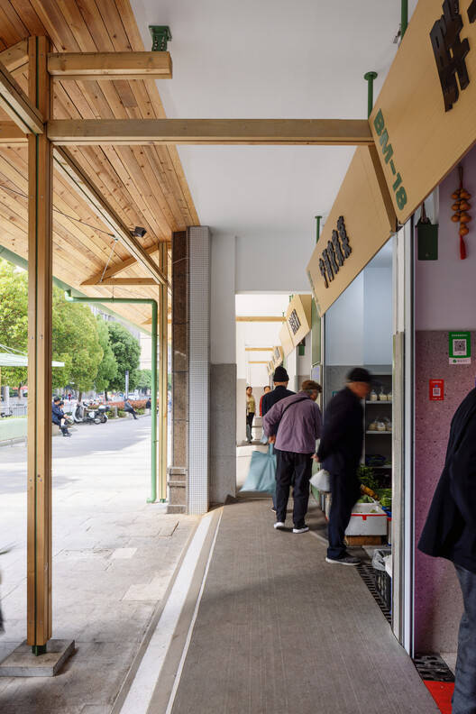 “链接”是本次项目的关键词之一,不仅是用新“建筑”与原街区之间建立起新的联系,更是链接“商户”与“邻里”。儿时生活在农村那段日子,最期待的就是集市日的到来,步行五公里,去到一条自然形成的市集,琳琅满目,充满香气的包子铺,清汤铺、揣着5块钱,就可以自在一上午。自然形成的集市区别于城市中标准化的菜市场,它更多的是菜农自由地选择摆摊的时间和位置,人与人之间的物理与心理距离非常近。