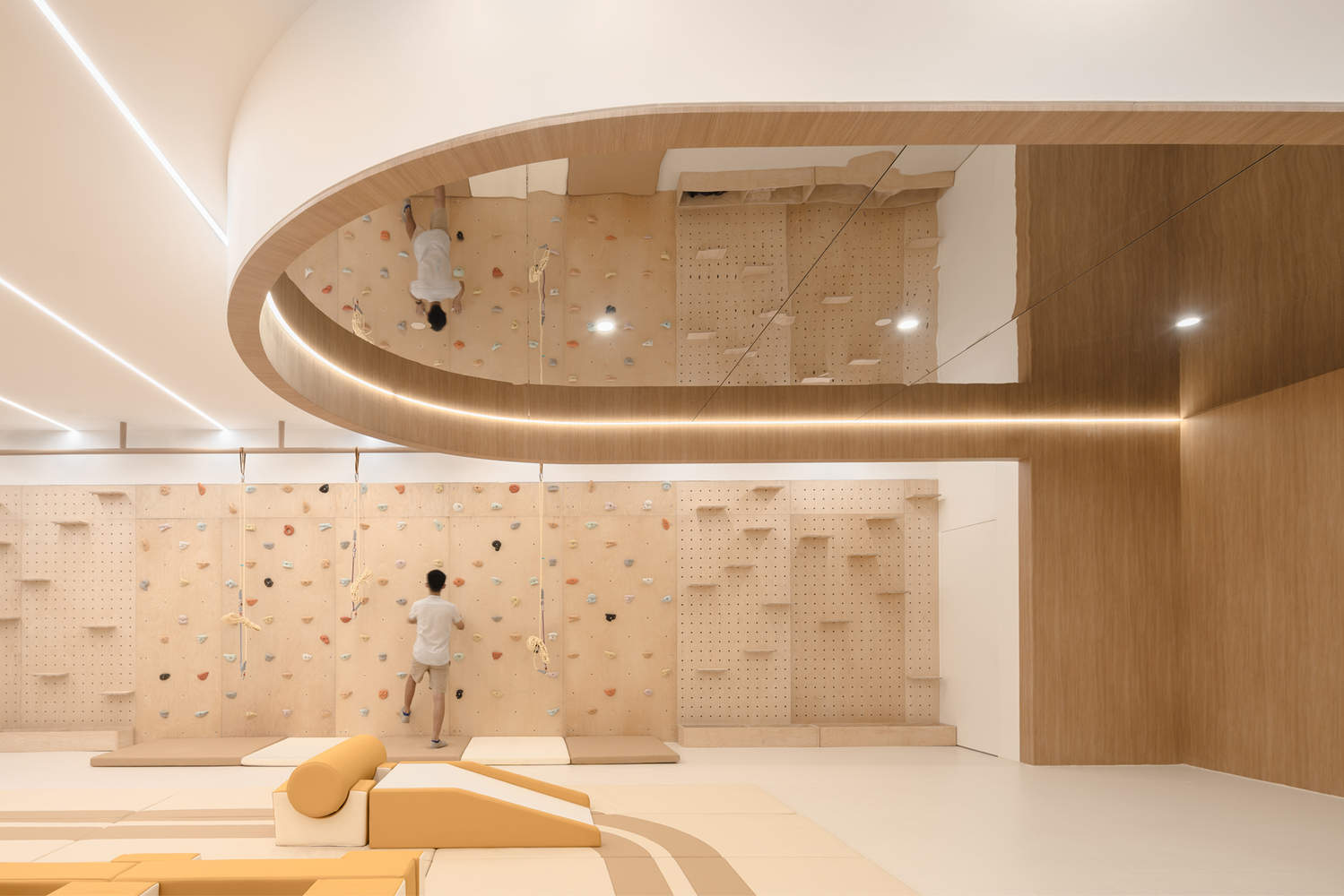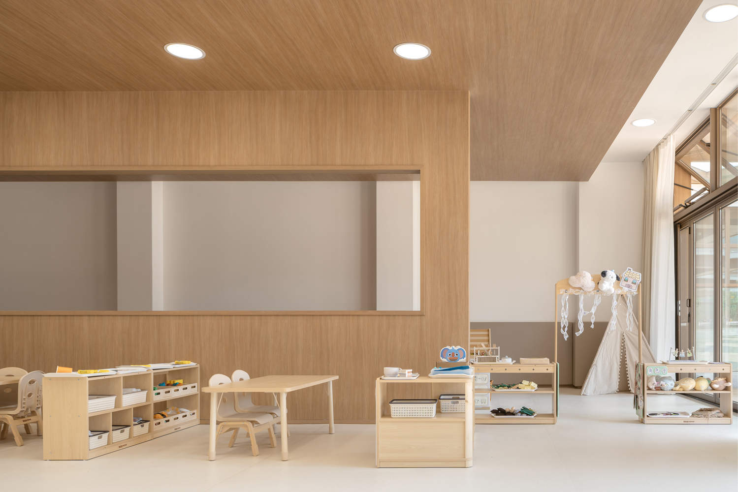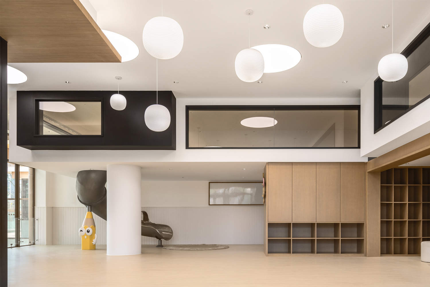 该项目通过建筑化室内设计,将城市空间逻辑转译为教育载体,使儿童在日常互动中自然感知集体秩序,建立个体与群体的空间认知。