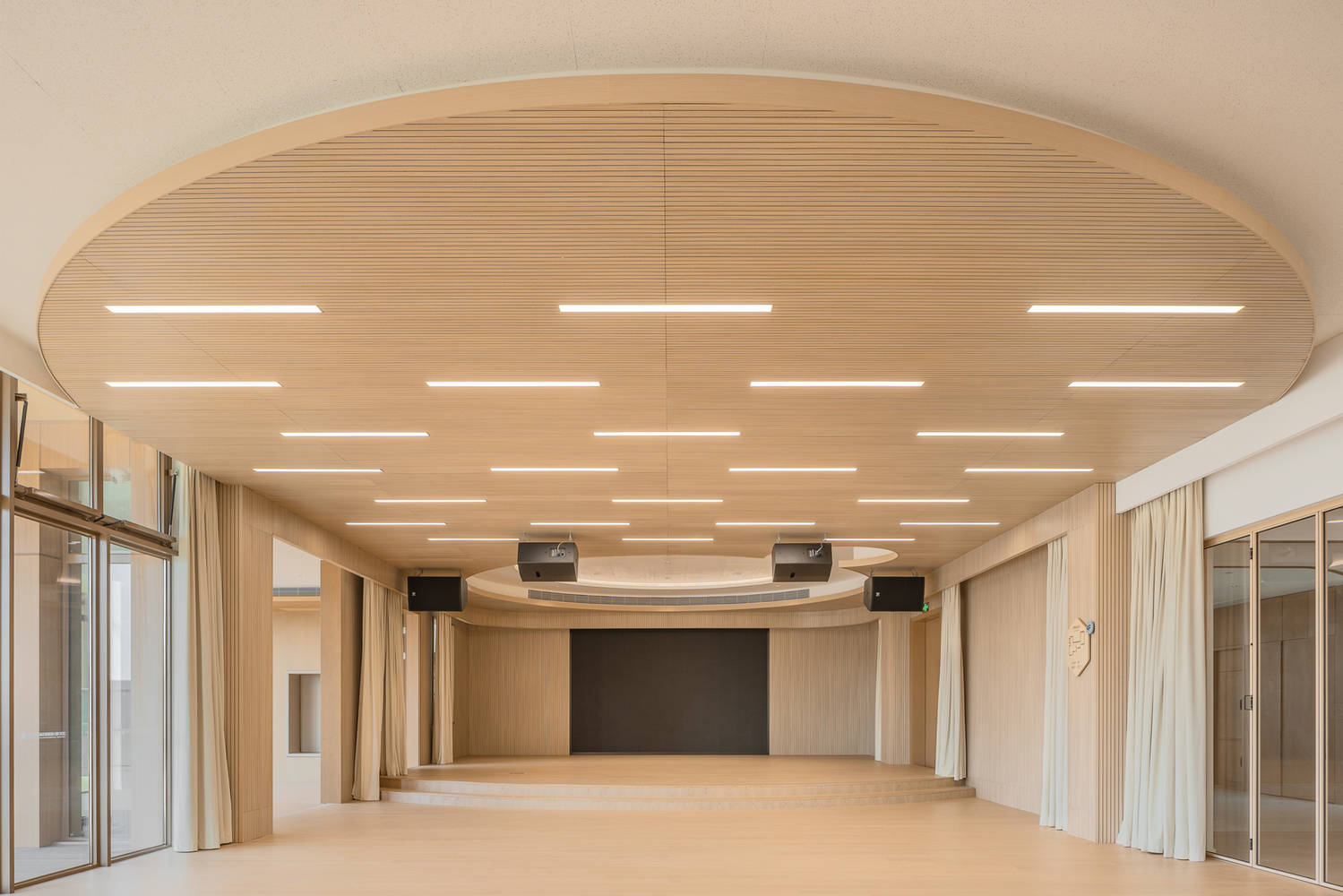 Lubei Kindergarten is located on the west side of Luhu Community and is the first public kindergarten in the area. The architectural design adopts a layered setback strategy, creating more indoor public spaces for lower floors based on the unified depth of teaching units. The large-scale layout not only meets the needs of children's sensory integration training, but also conveys the progressive educational concept of "public group individual" through spatial hierarchy division.